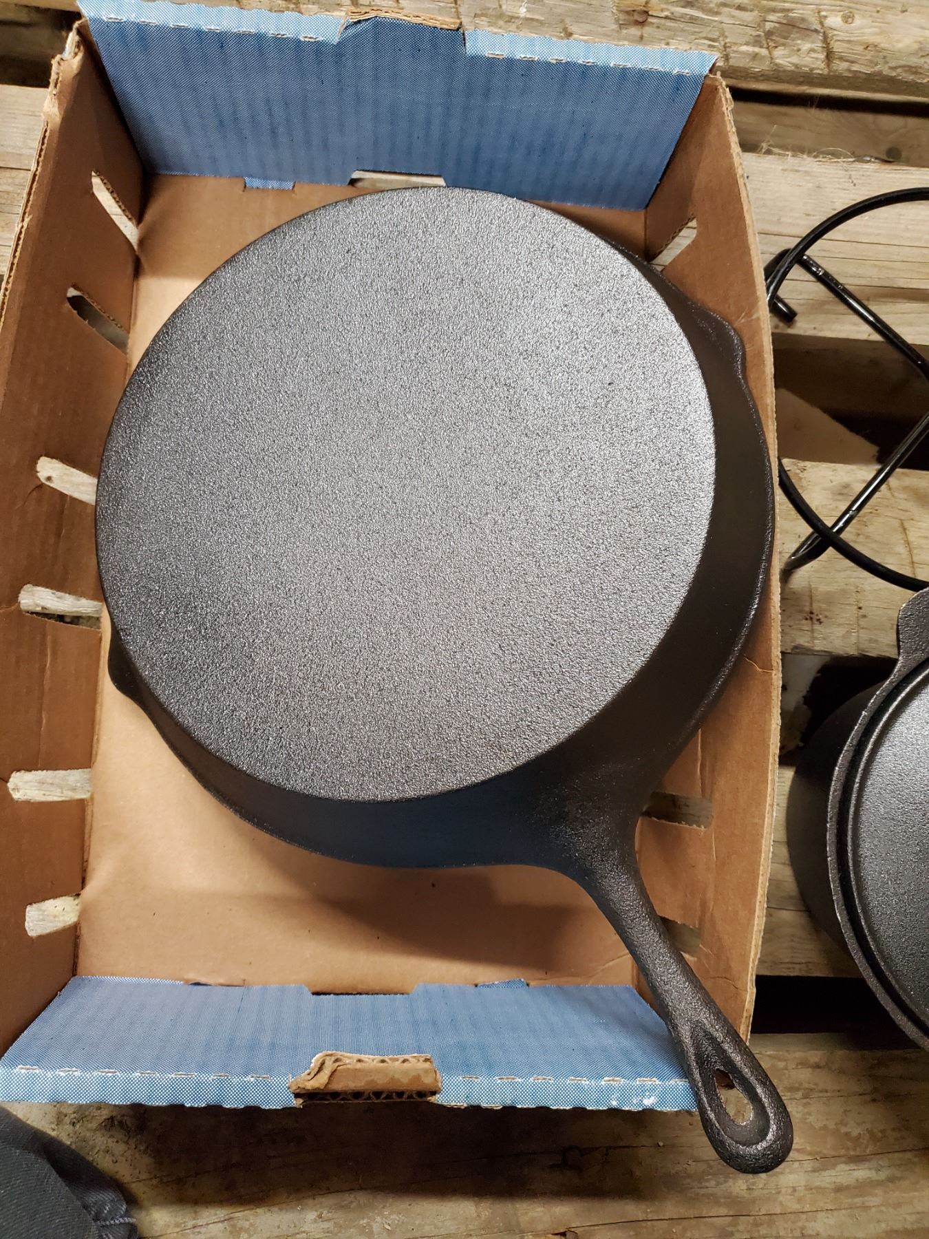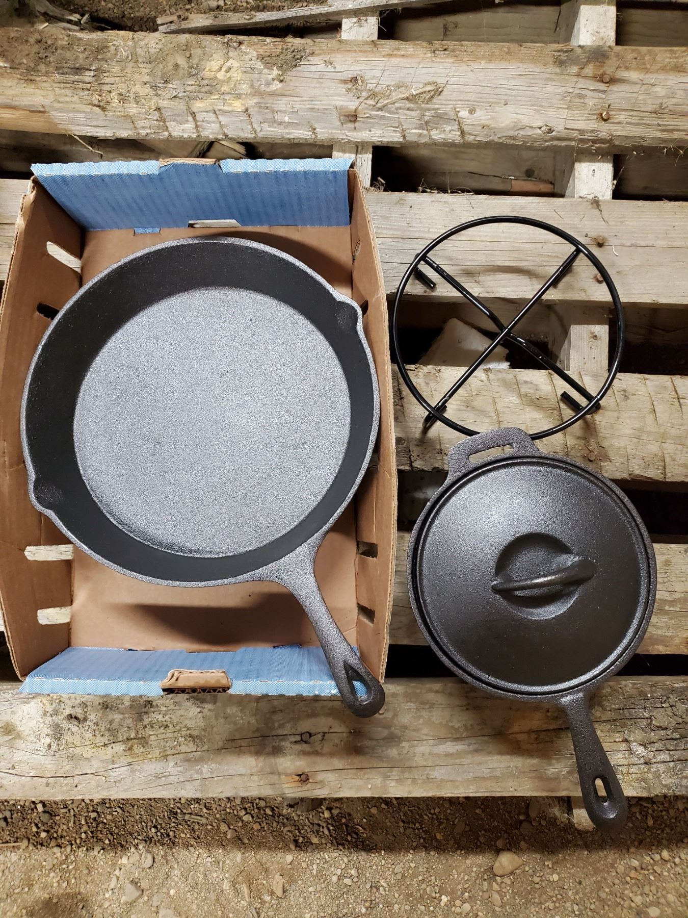 CAST IRON POT 8" + FRY PAN 12" W/ WIRE STAND
