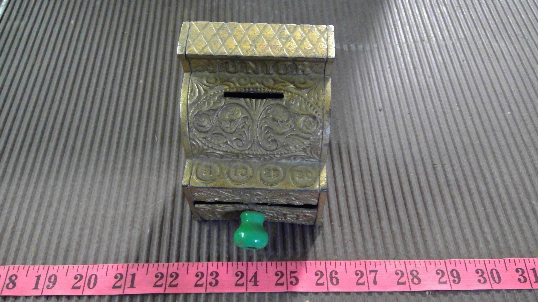 CAST IRON TOY BANK - SMALL CRACK IN FRONT DRAWER - JUNIOR