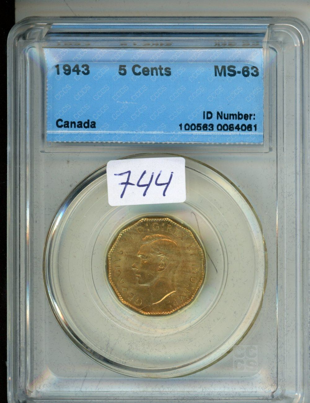 CCCS Graded 1943 Canada 5¢ Coin - MS-63