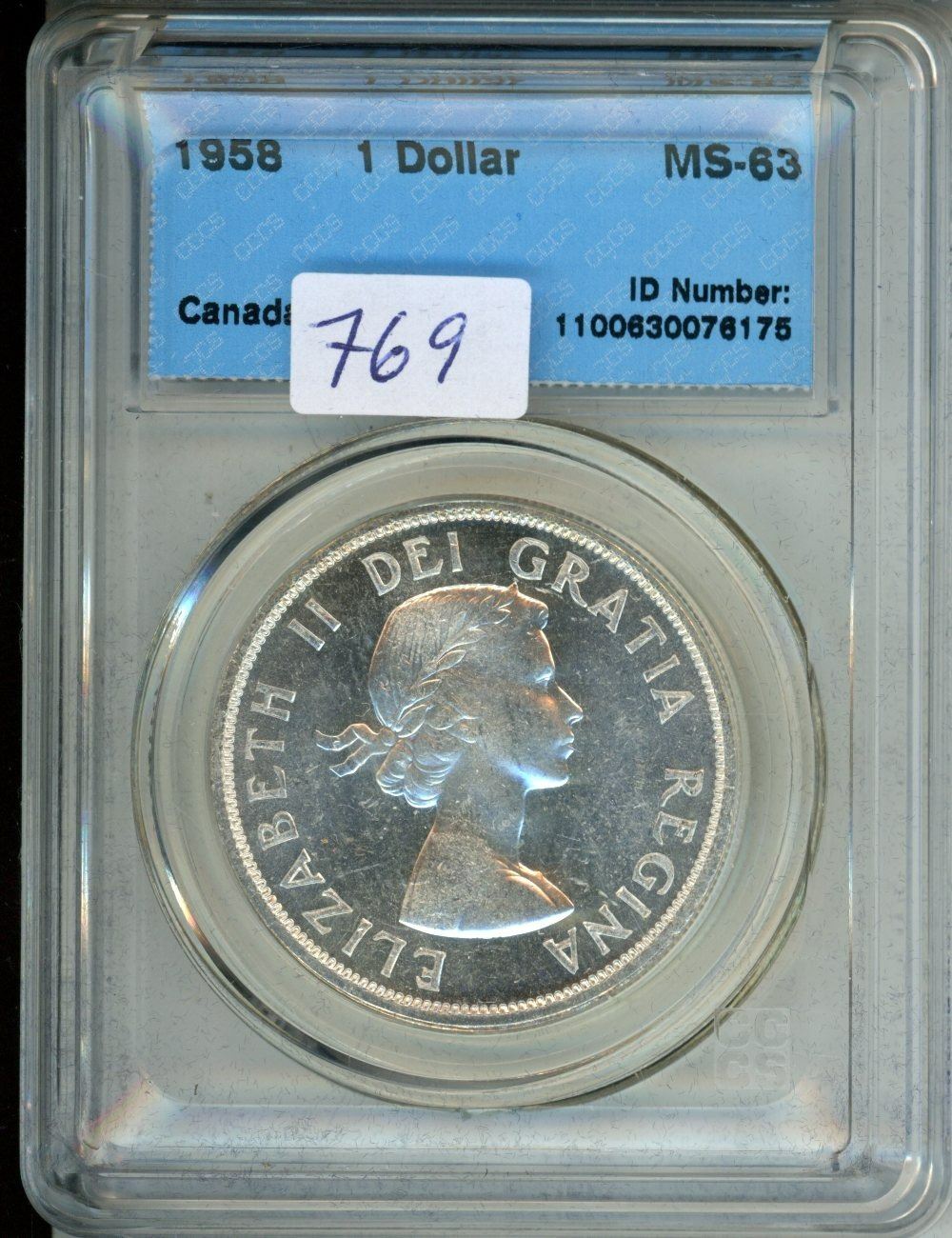 CCCS Graded 1958 Canada $1 Coin - MS-63