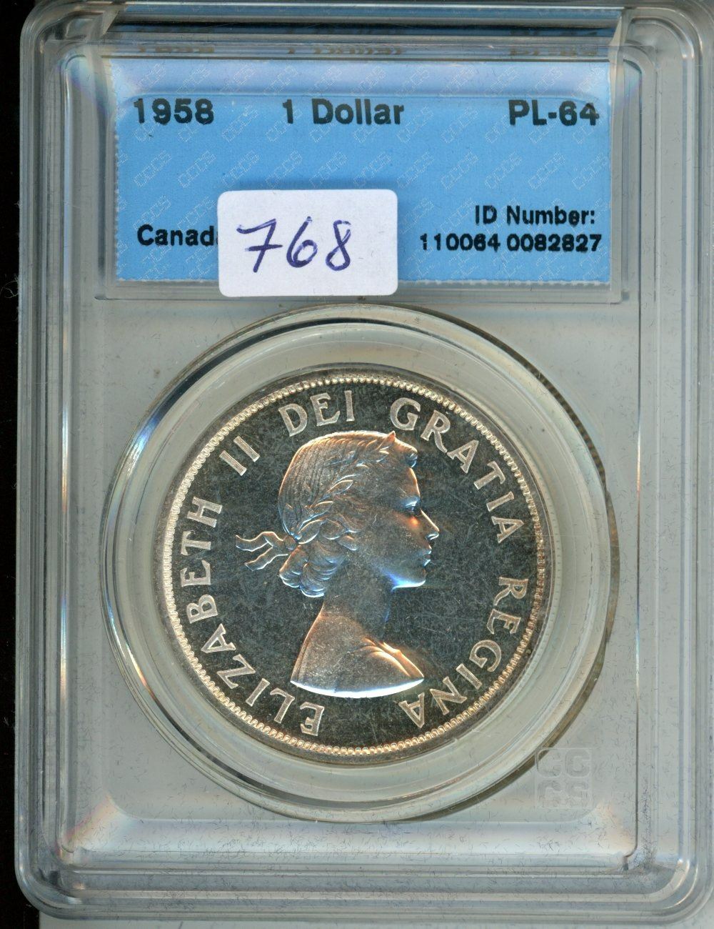 CCCS Graded 1958 Canada $1 Coin - PL-64