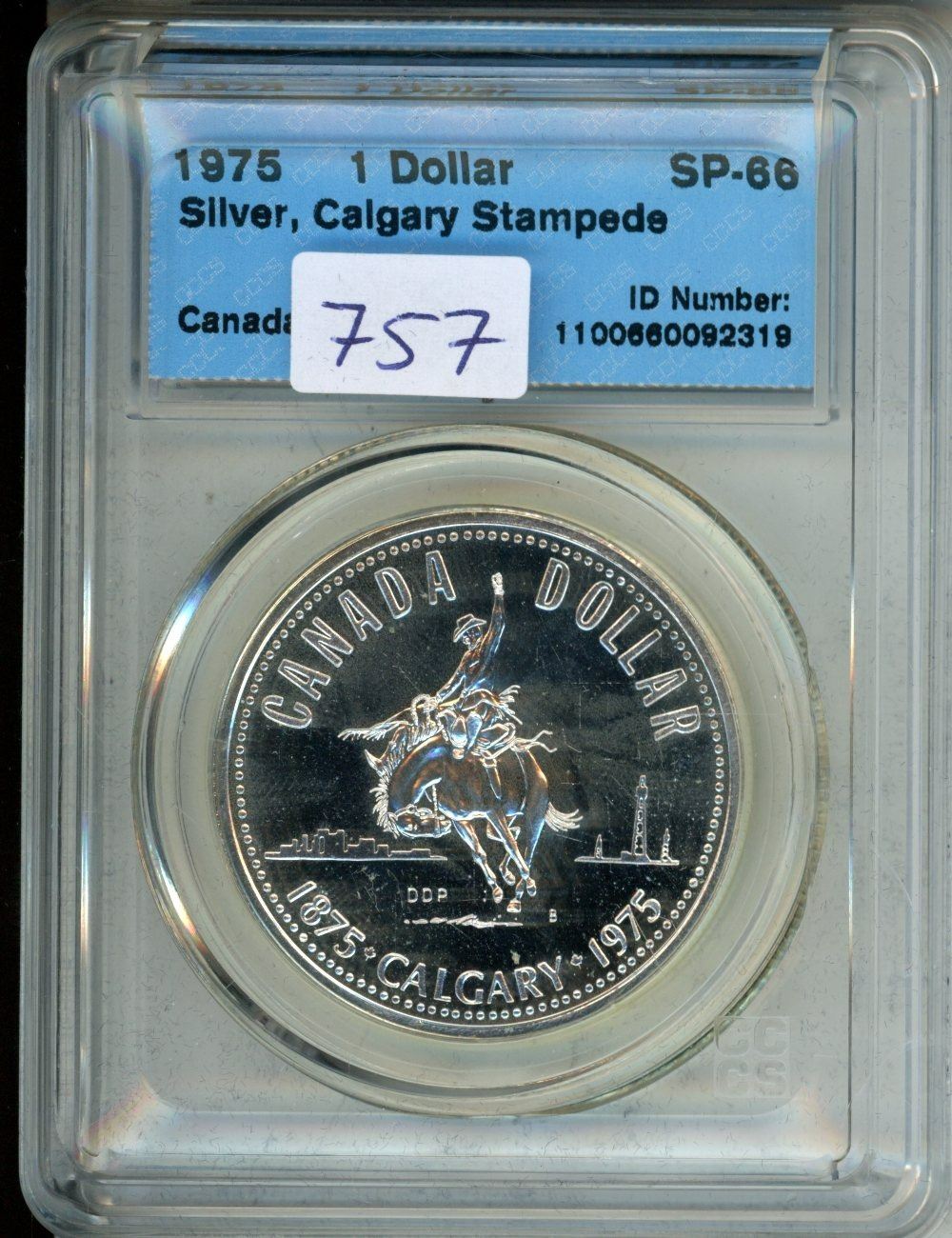 CCCS Graded 1975 Canada $1 Coin - Silver, Calgary Stampede SP-66