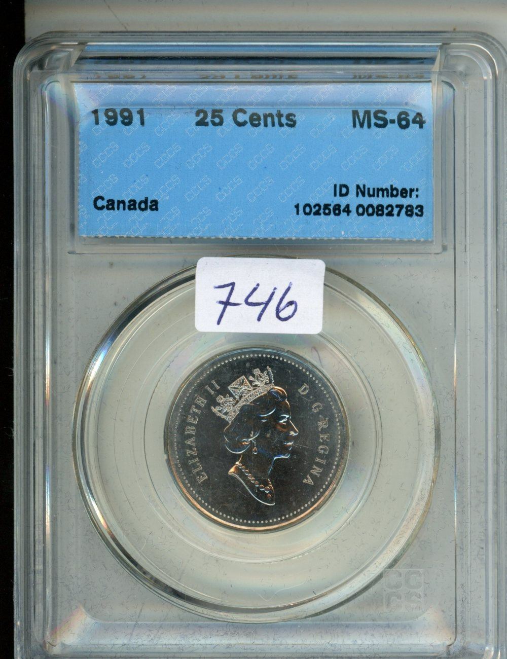 CCCS Graded 1991 Canada 25¢ Coin - MS-64