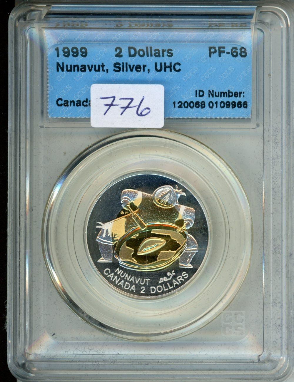 CCCS Graded 1999 Canada $2 Coin - Nunvut, Silver, UHC PF-68