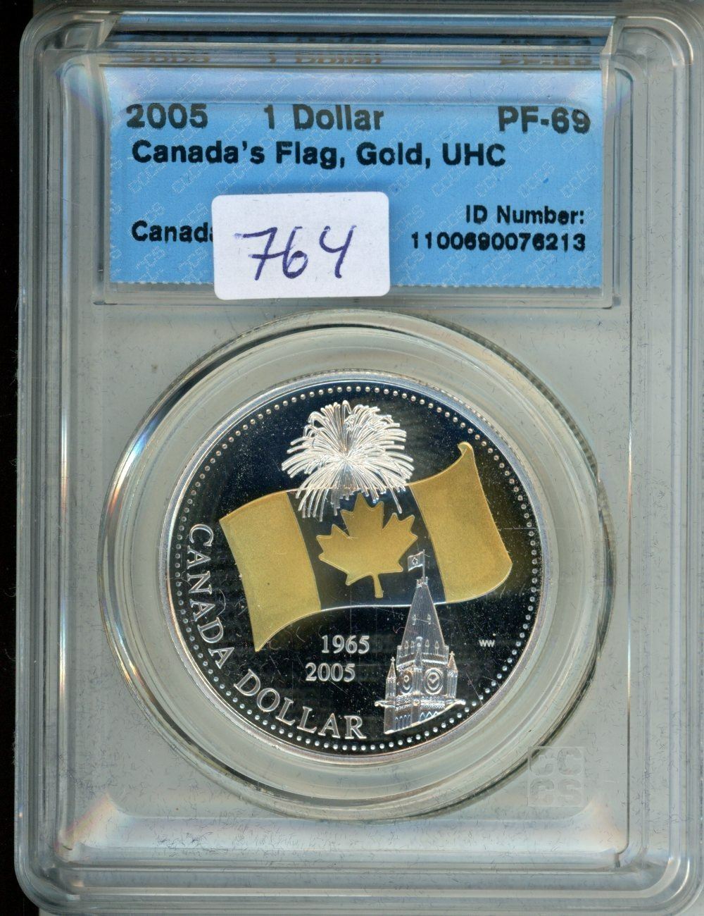 CCCS Graded 2005 Canada $1 Coin - Canada's Flag, Gold, UHC PF-69