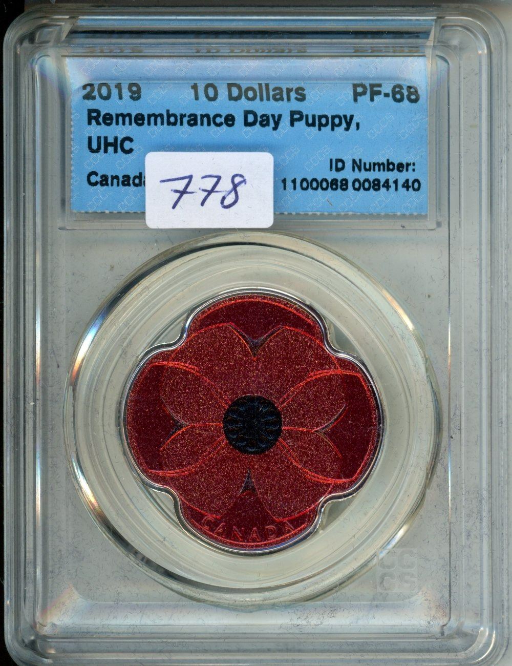 CCCS Graded 2019 Canada $10 Coin - Remembrance Day Puppy, UHC PF-68