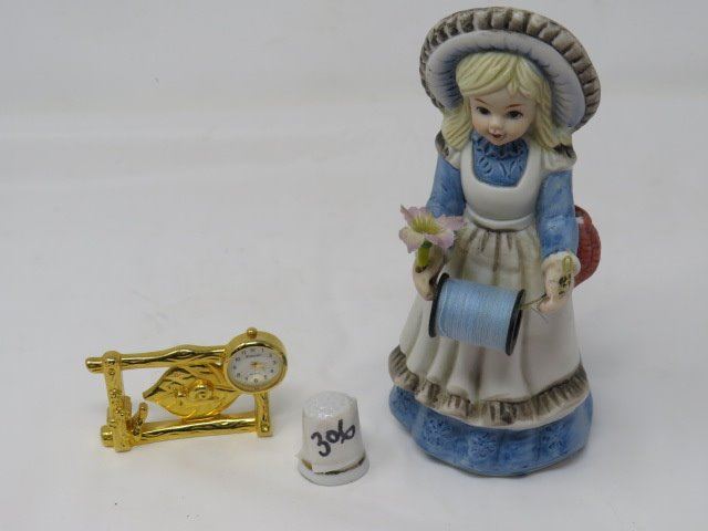 CERAMIC GIRL (W/PIN CUSHION HAT, SPOOL OF THREAD, ETC.)