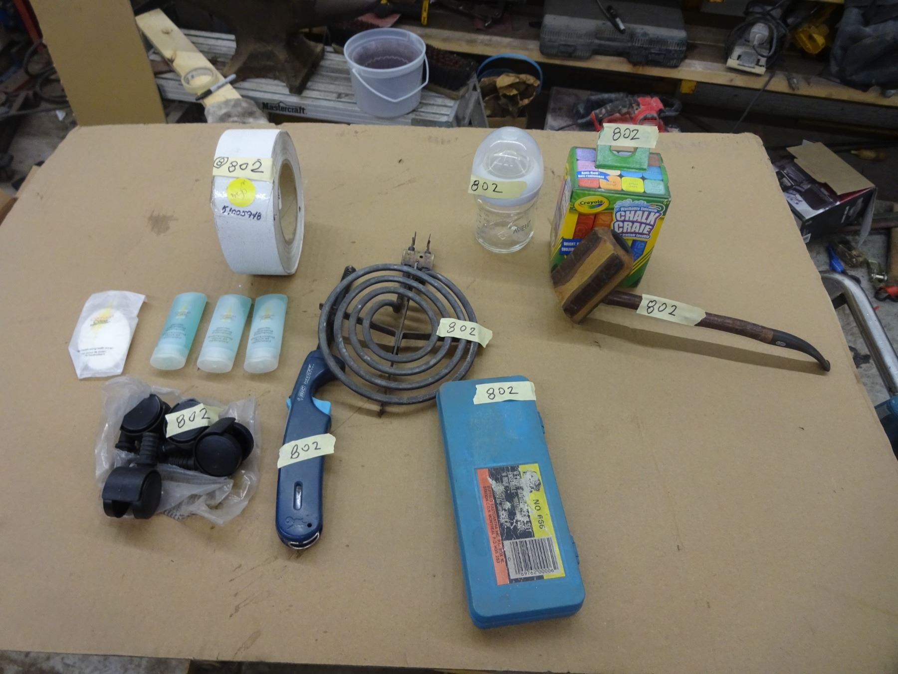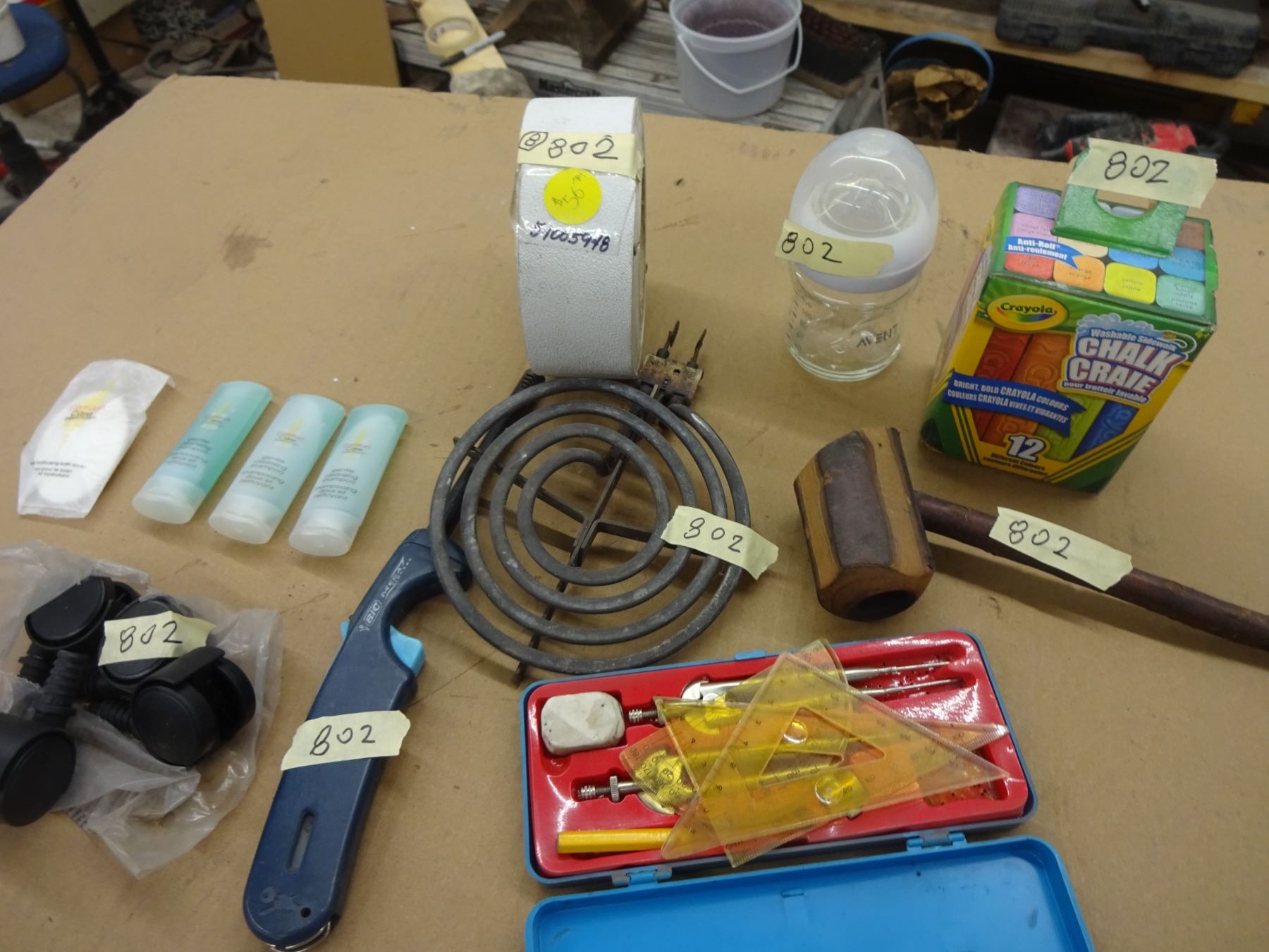 CHALK,LIGHTER, BOTTLE, STOVE RING, COMPASS