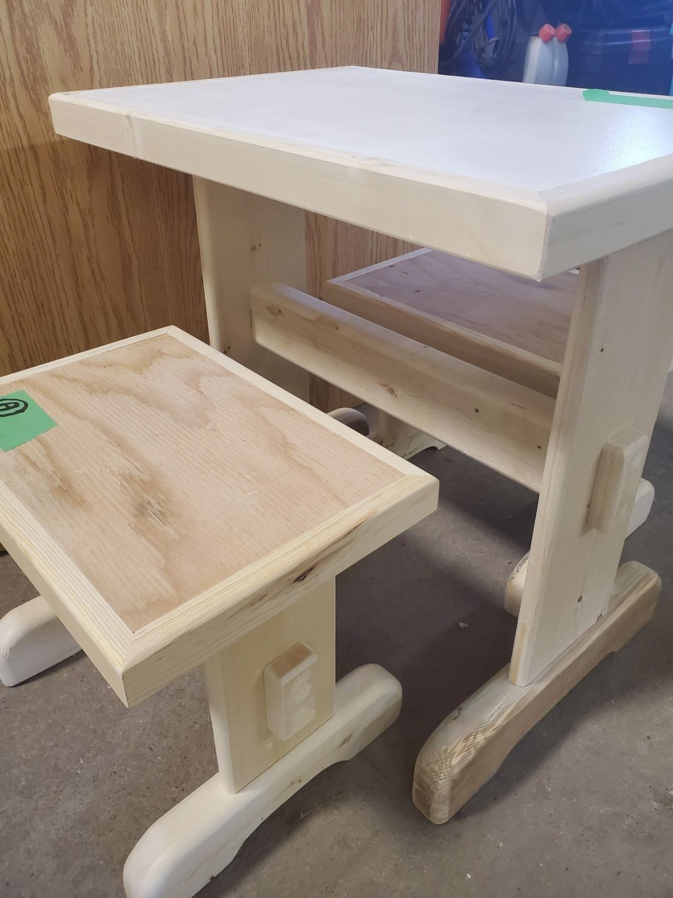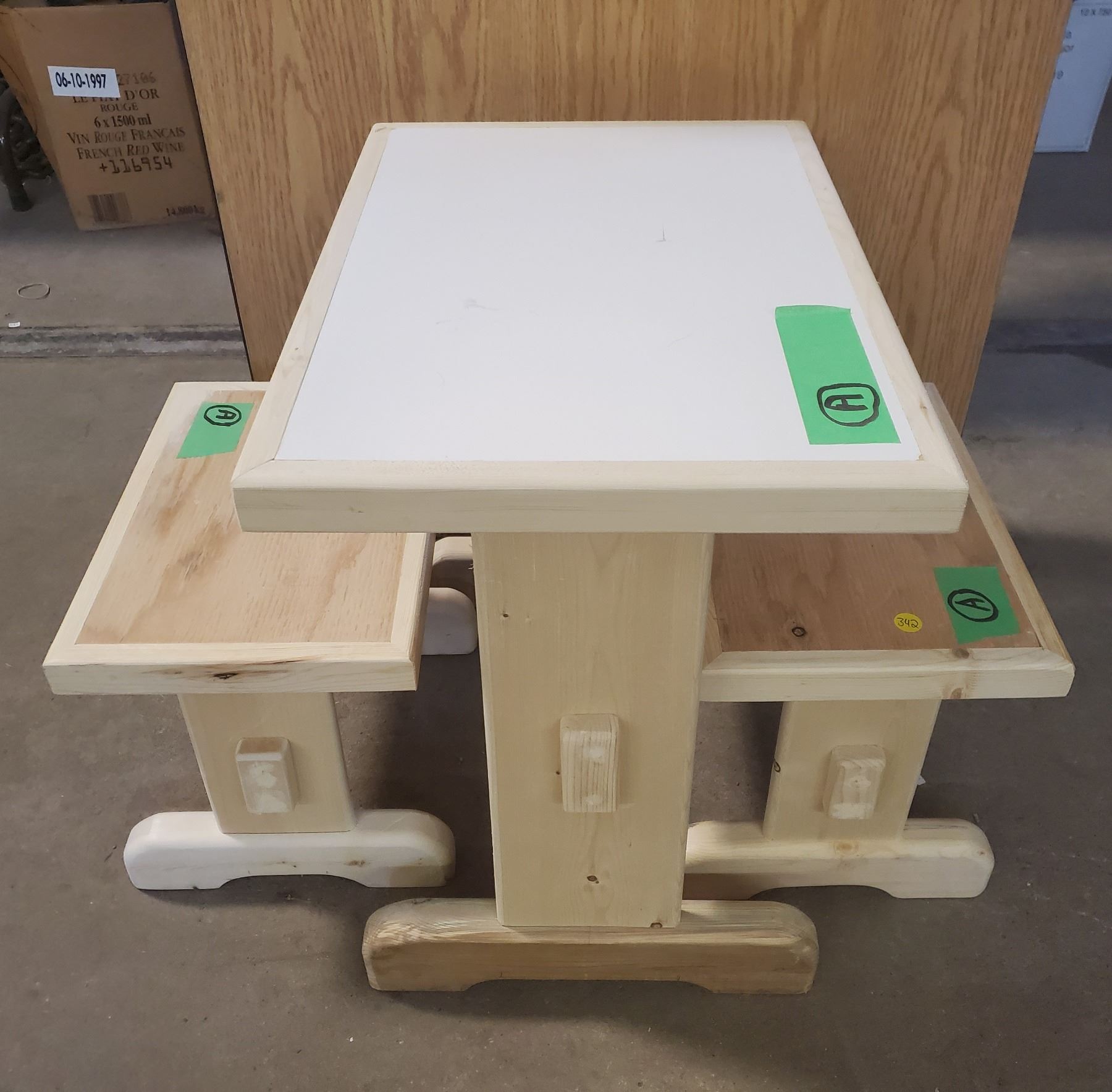 TABLE MEASUREMENTS 20 3/4" x 14 1/2" x 20 1/2" BENCH MEASUREMENTS 14 1/2" x 9 3/4" x 2'H