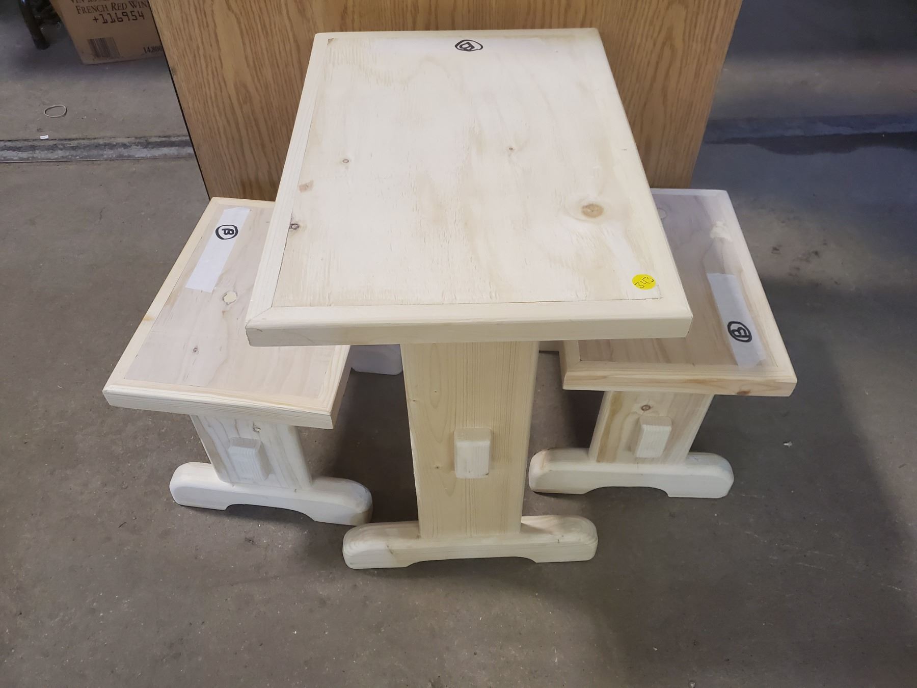 TABLE MEASUREMENTS 20" x 14" x 19"H BENCH MEASUREMENTS 13 3/4" x 10" x 11 1/2" H