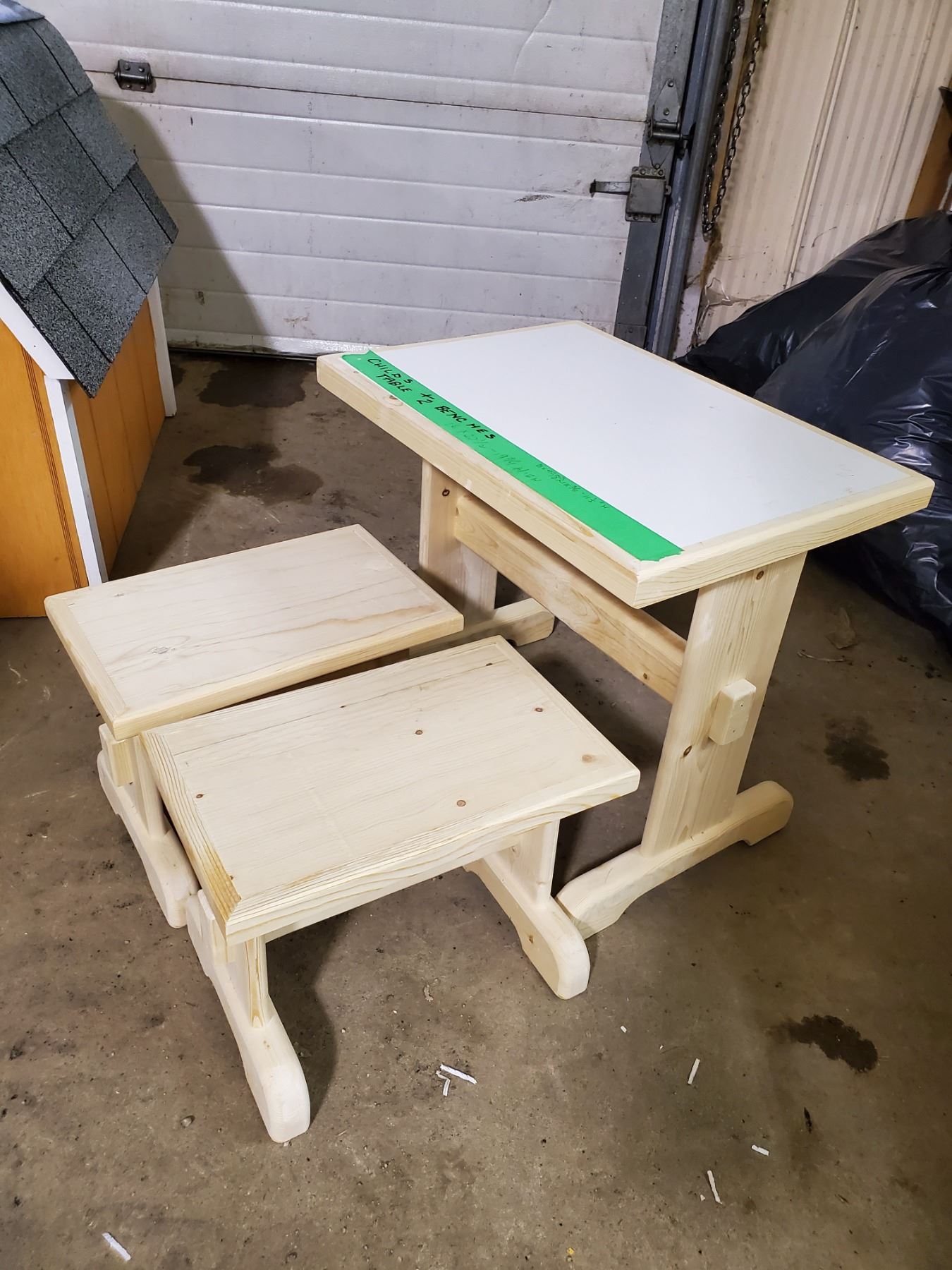 CHILDS TABLE 16X22.5X19.75" WITH TWO BENCHES 10X15.5X11.5"