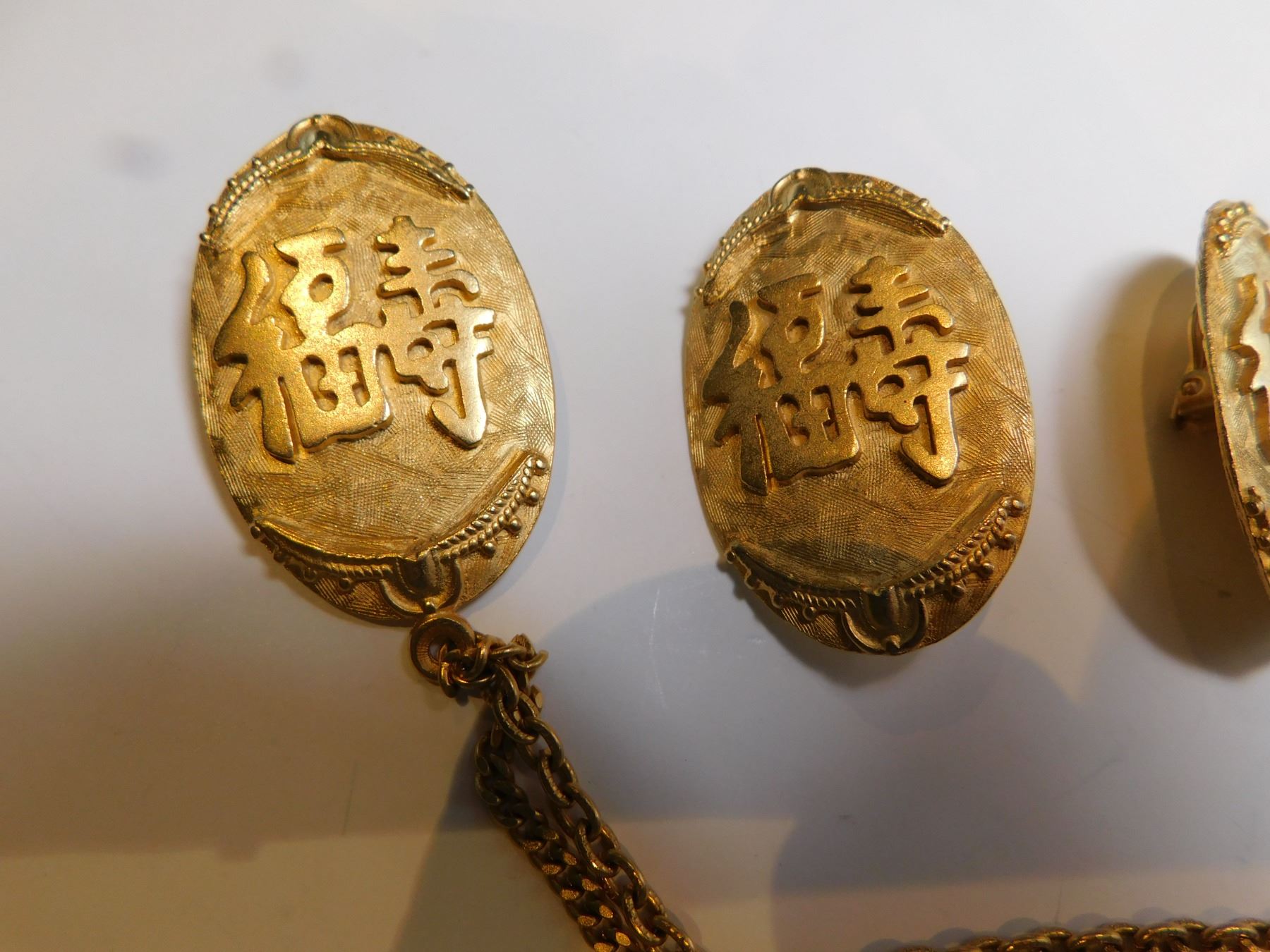CHINESE GOOD LUCK EARINGS AND BROACH