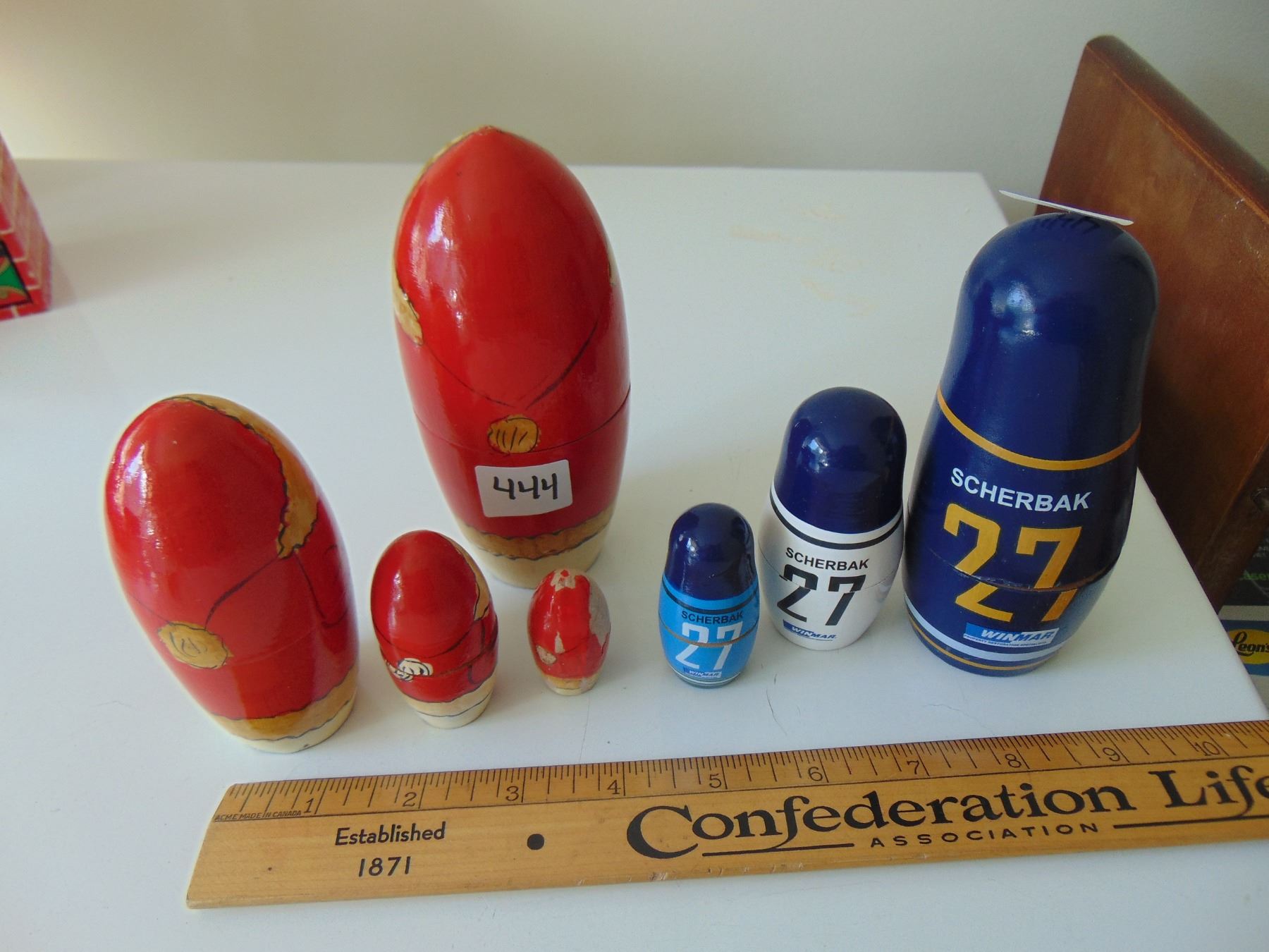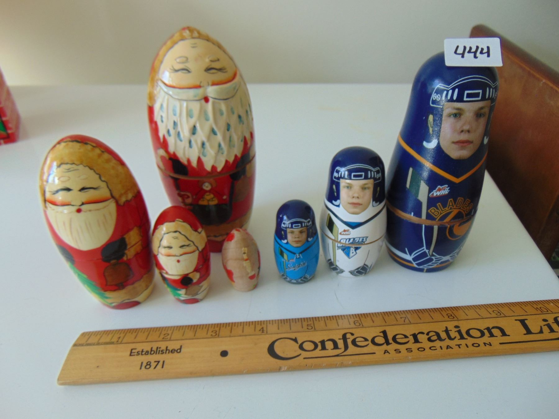 CHRISTMAS AND HOCKEY PLAYER NESTING DOLLS