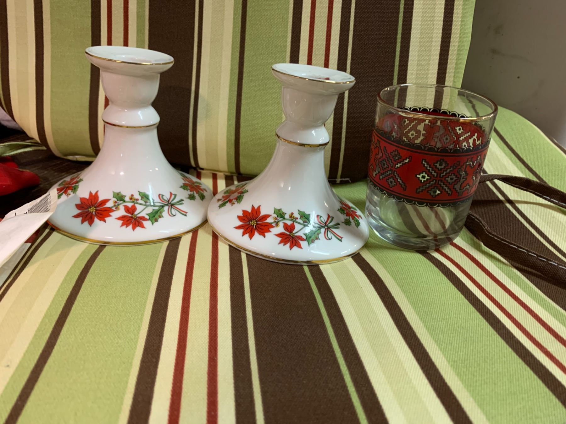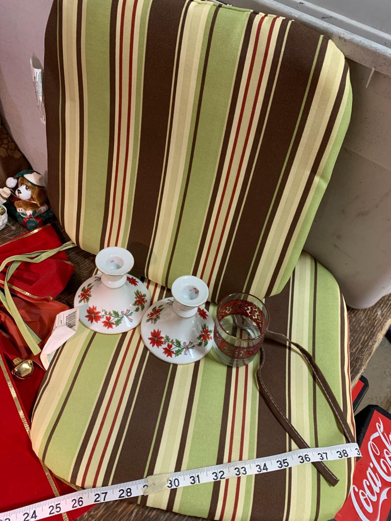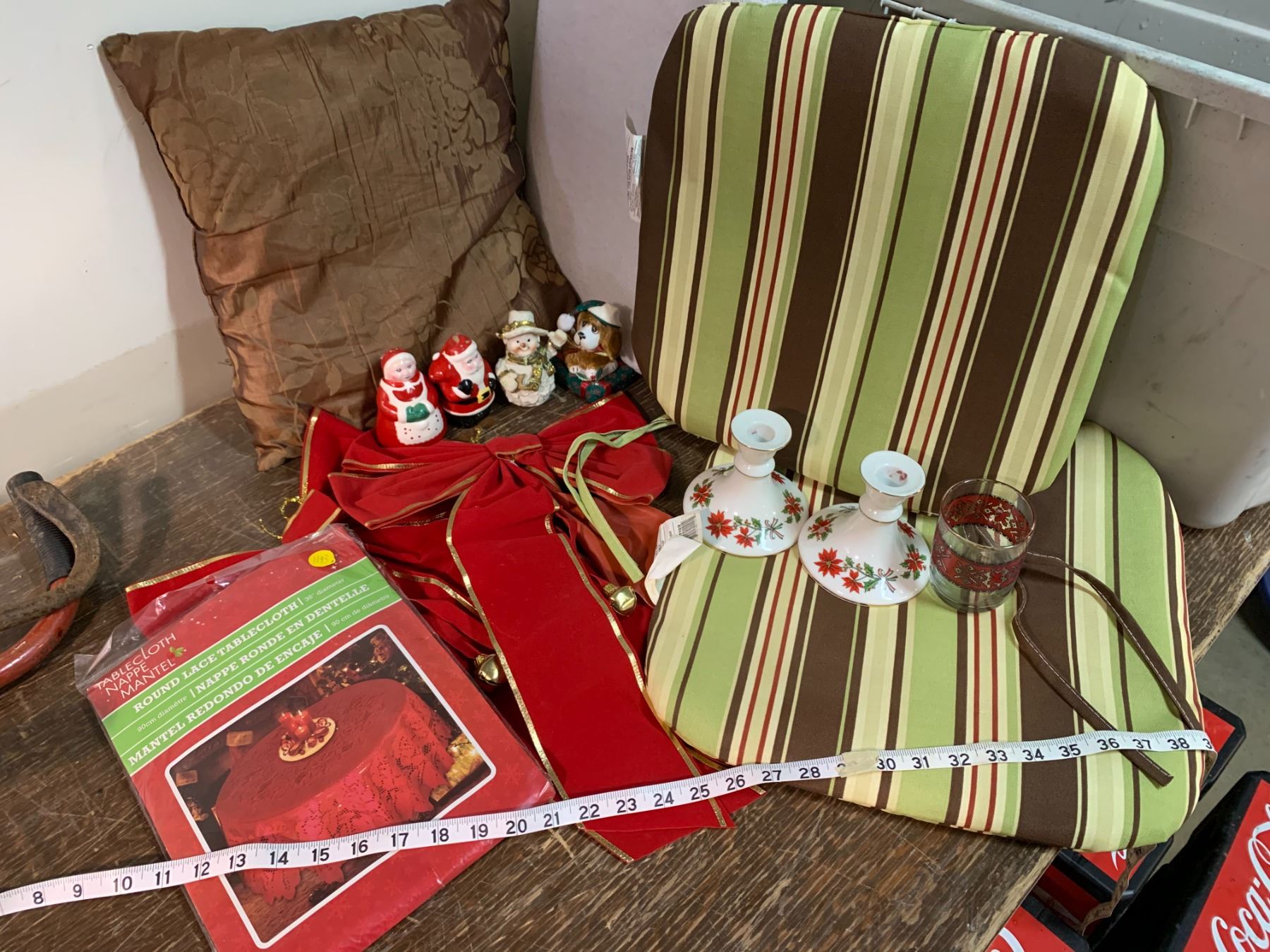 CHRISTMAS ITEMS, PILLOWS, AND CHAIR CUSHION