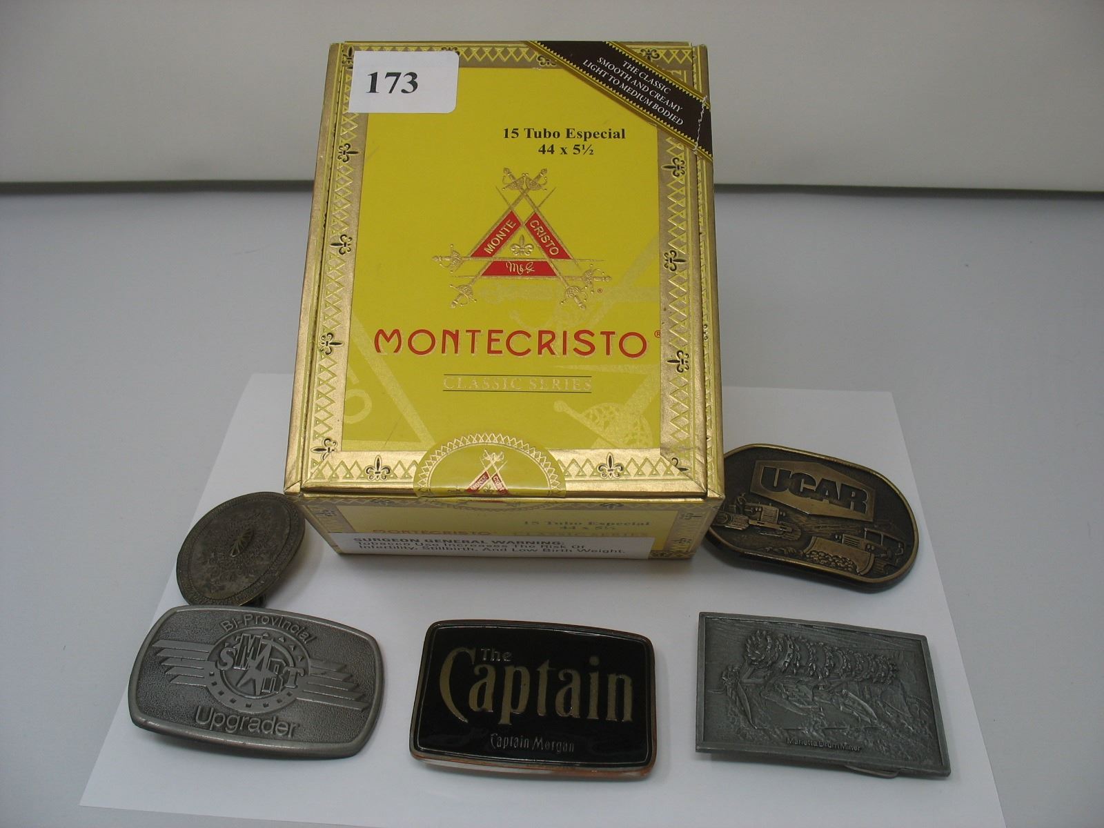 CIGAR BOX WITH 5 BELT BUCKLES