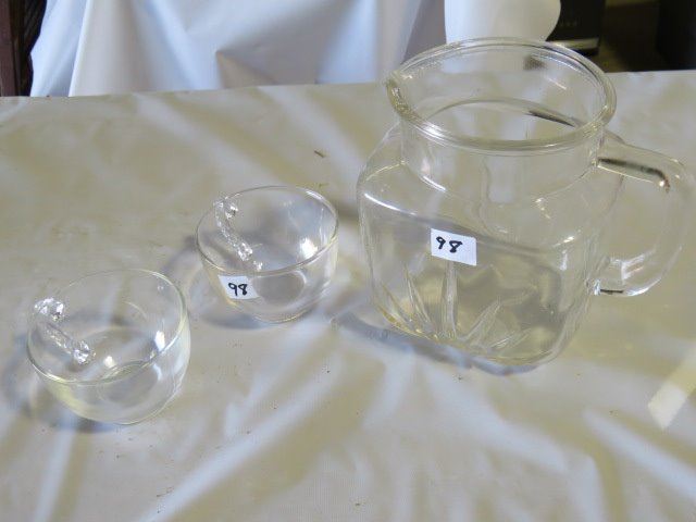 CLEAR GLASS JUICE PITCHER, 2 CLEAR GLASS CUPS