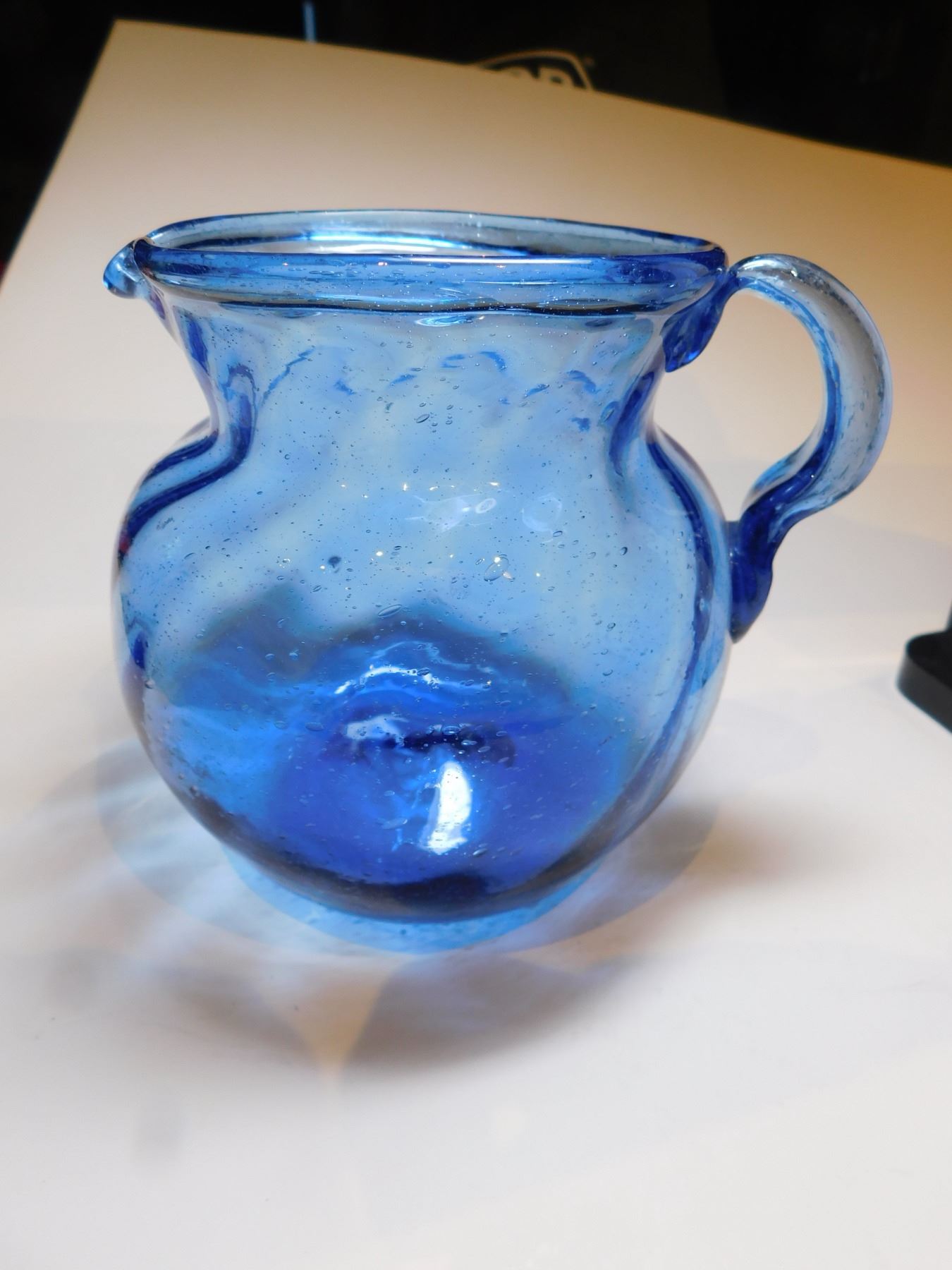 COBALT BLUE ART GLASS PITCHER