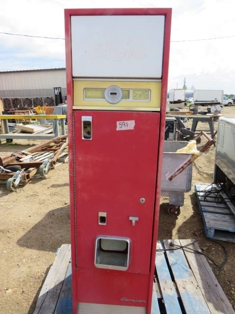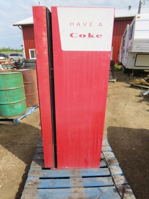 COCA-COLA COOLER (VINTAGE) *MODEL 55* (HAS COIN MECHANISM) *SHELVING*