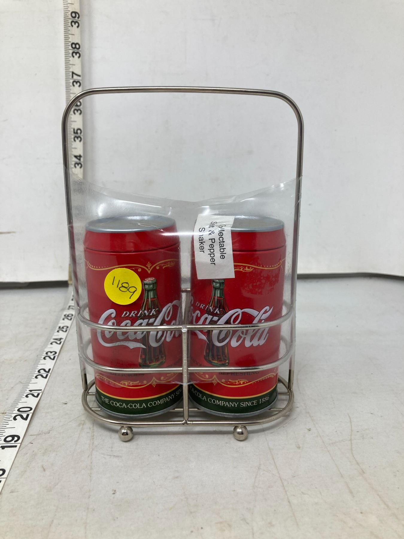 COCA-COLA SALT+PEPPER SHAKERS WITH HOLDER