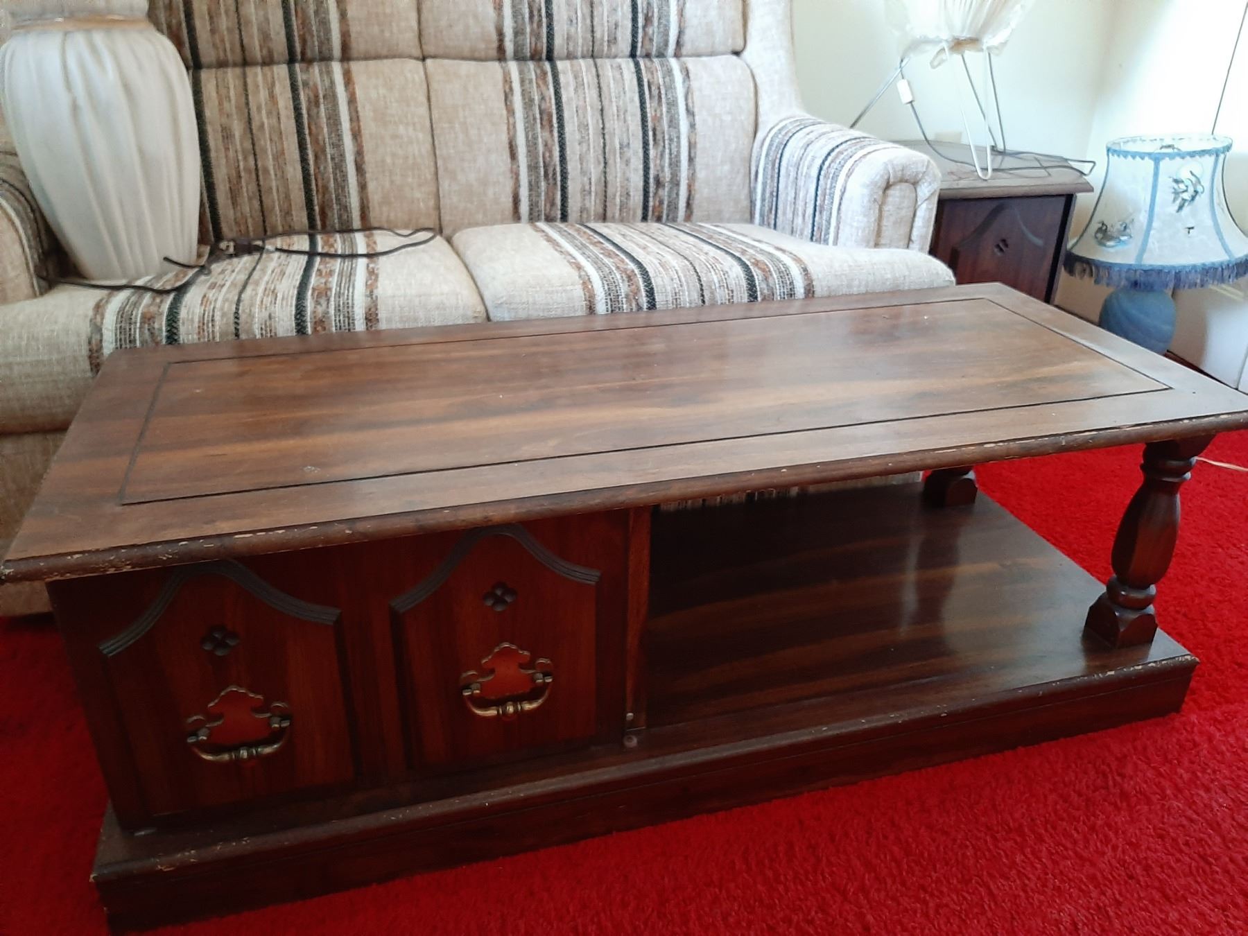 COFFE TABLE WITH STORAGE AND HEXAGON END TABLE