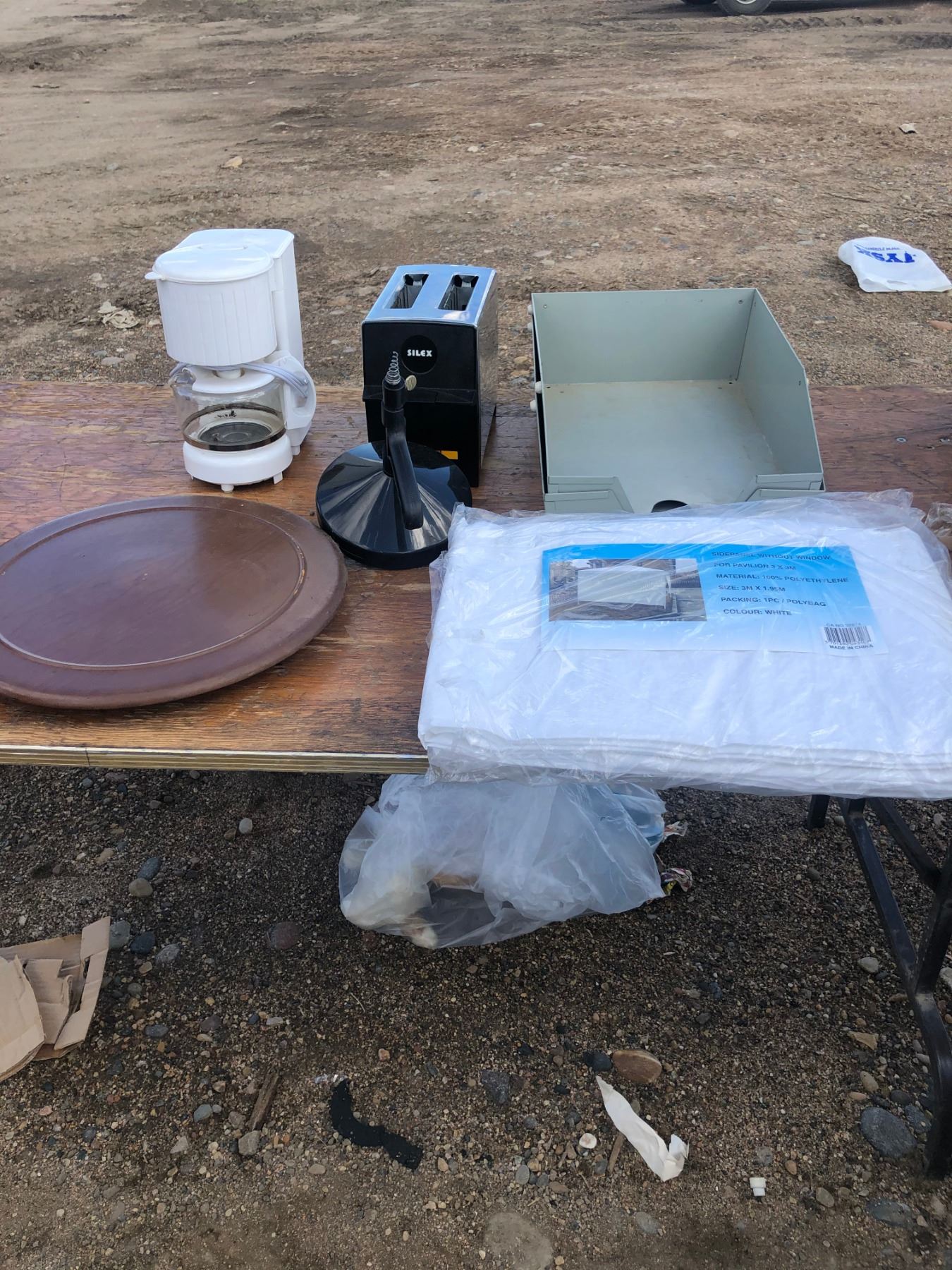 COFFEE MAKER + LAZY SUZAN + TOASTER+ METAL FILE BINS + DRAIN CLEANING TOOL + SIDE PANEL WITHOUT WINDOW