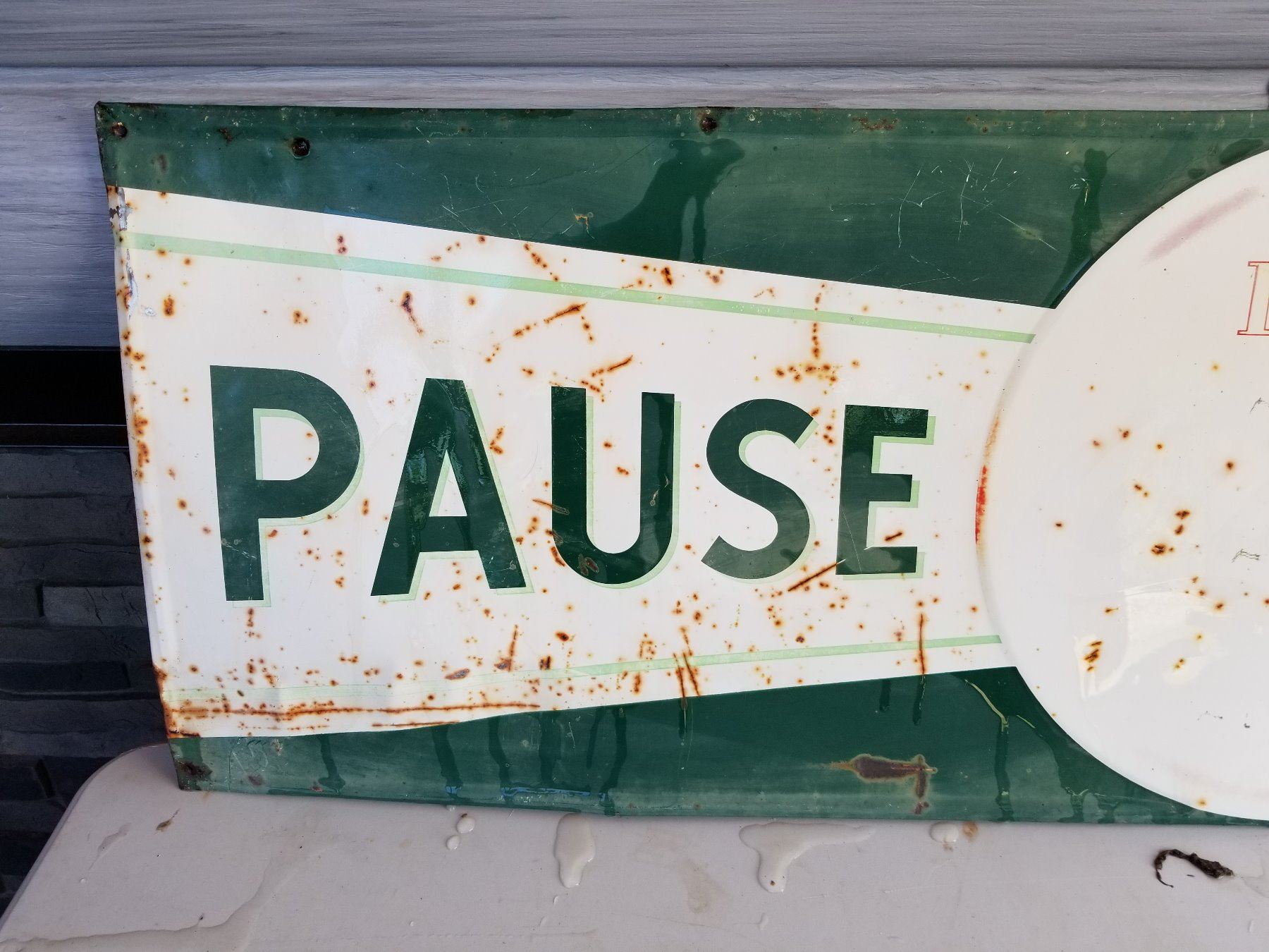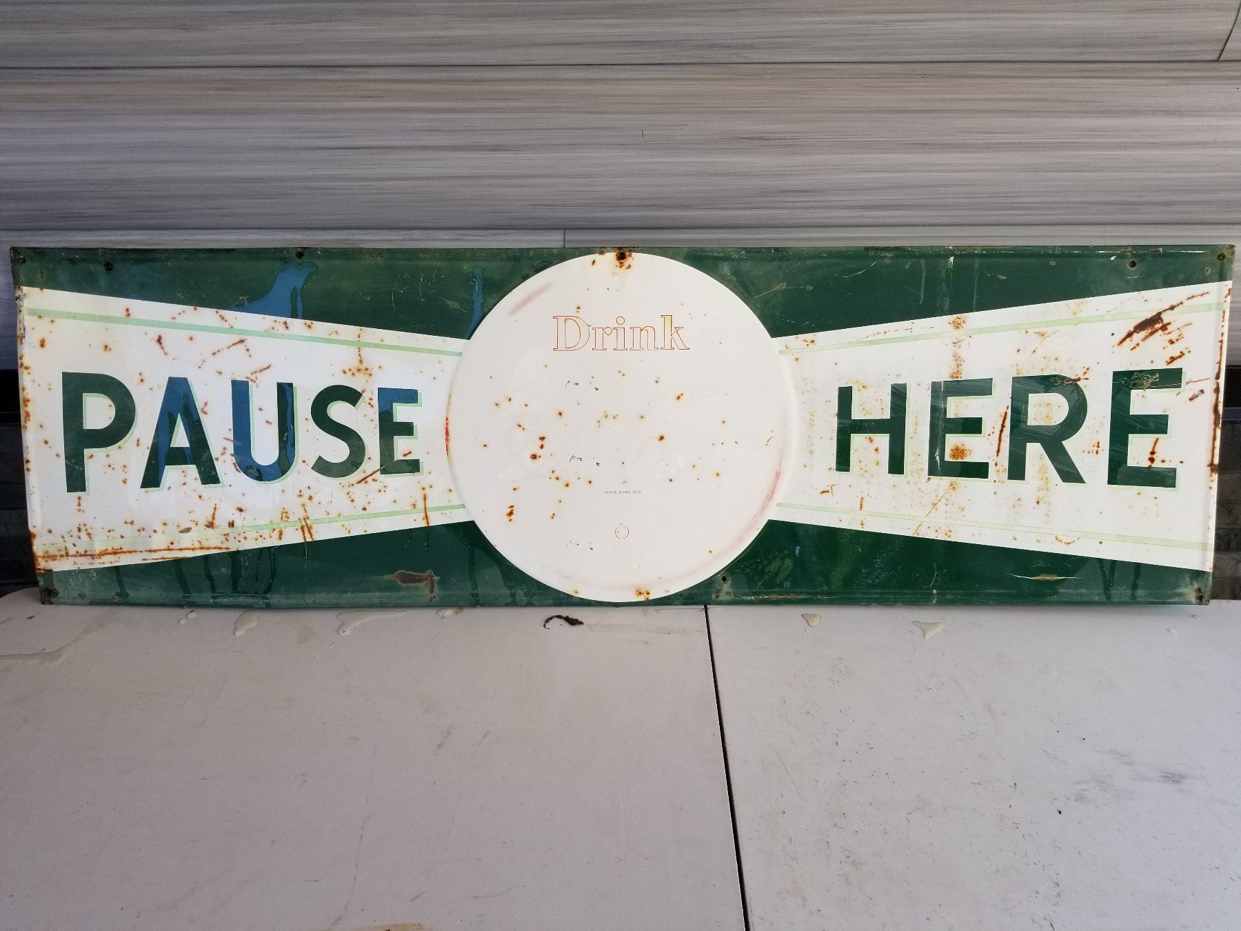 COKE SIGN (PAUSE HERE) *RED IS FADED AWAY* (57" X 17")