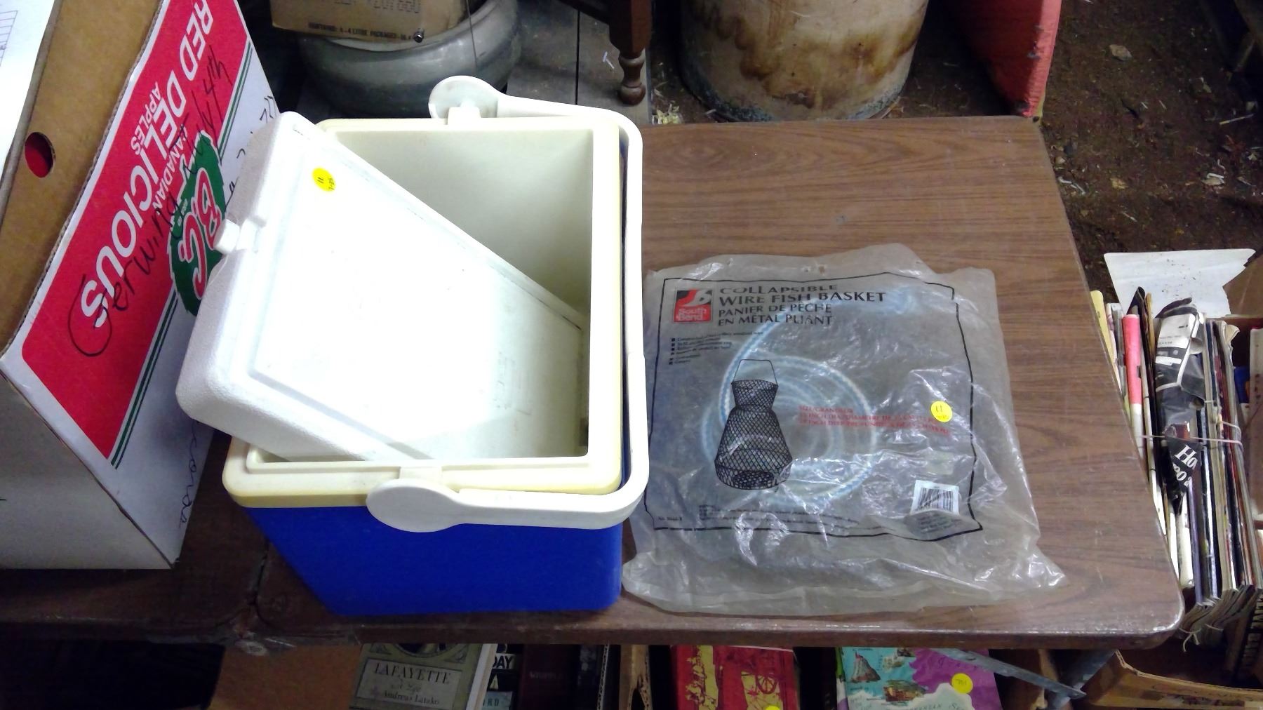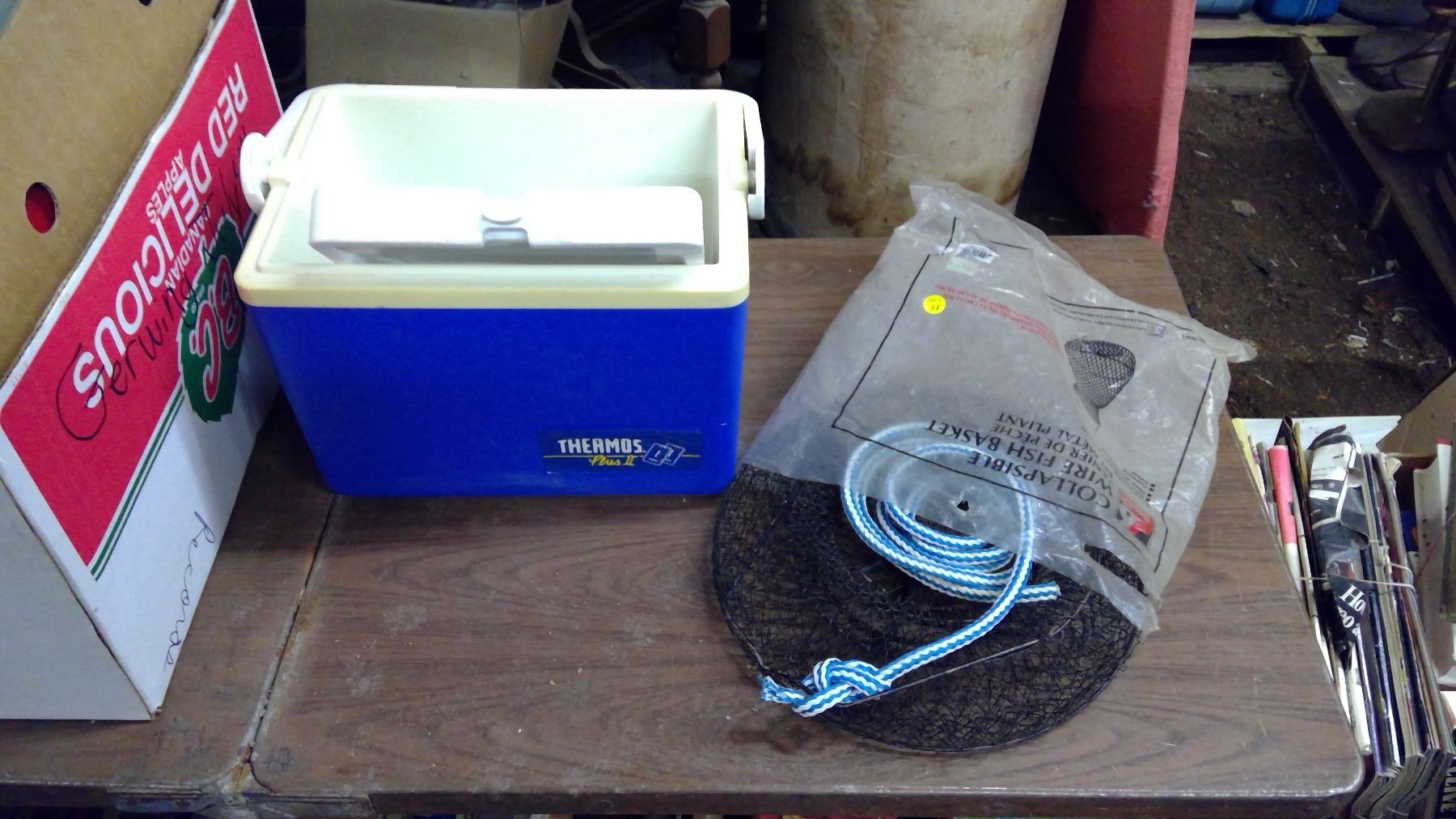 COLLAPSILE FISH BASKET AND THERMOS COOLER