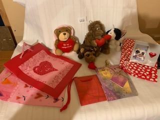 COLLECTION OF NEW VALENTINES NOVELTY 3 MINATURE PLUSH, BE MY VALENTINE TEDDY BEAR BOOK, PHOTO FRAME AND GIFT BAGS