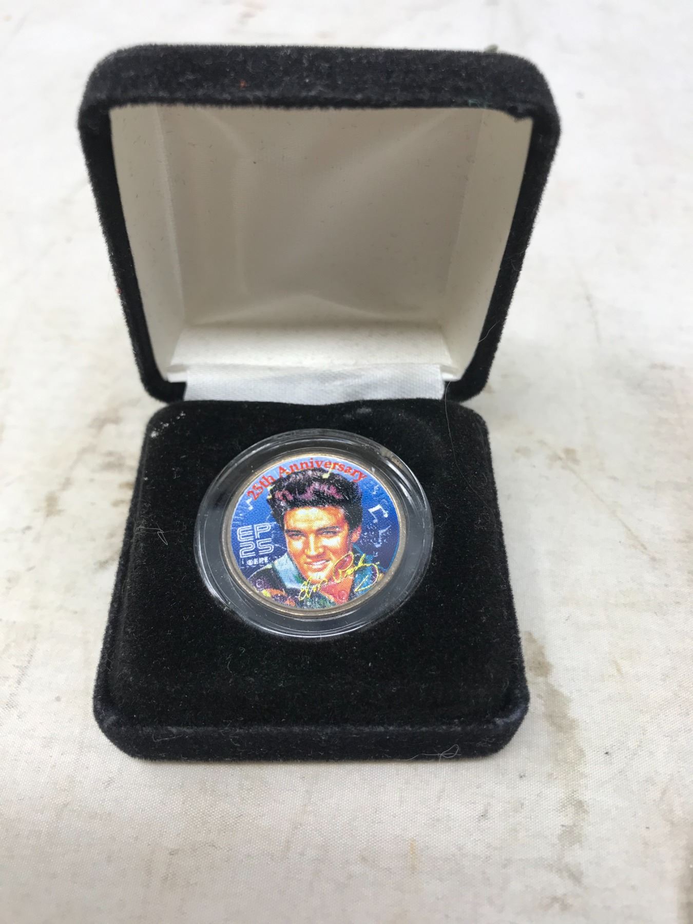 COLOURIZED ELVIS PRESSLEY ON A U.S. 2002D TENNESSEE QUARTER. IN CUSTOM CASE.