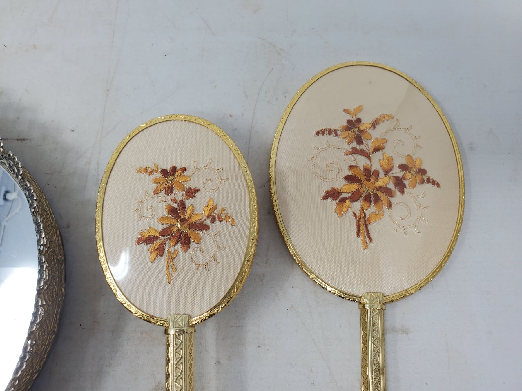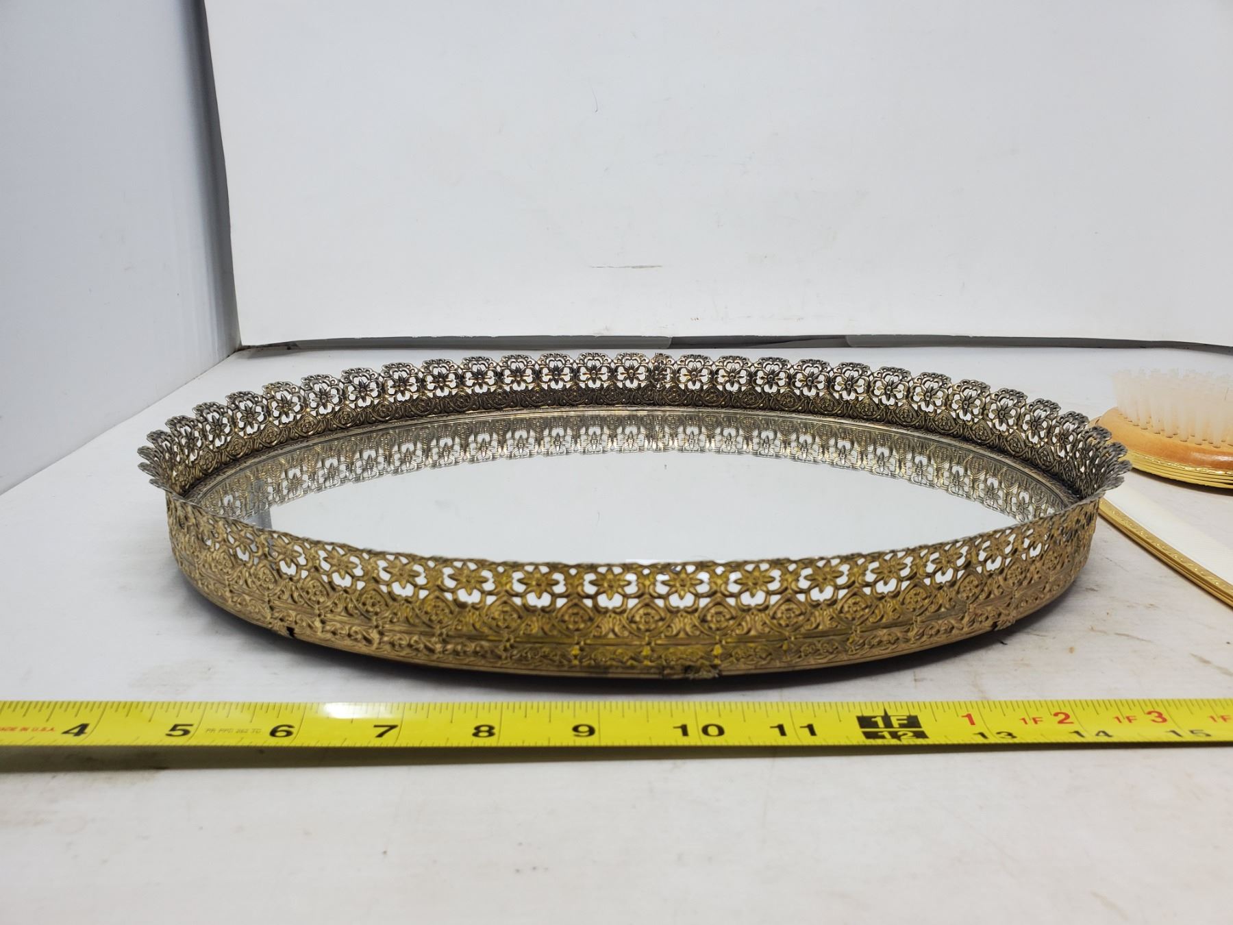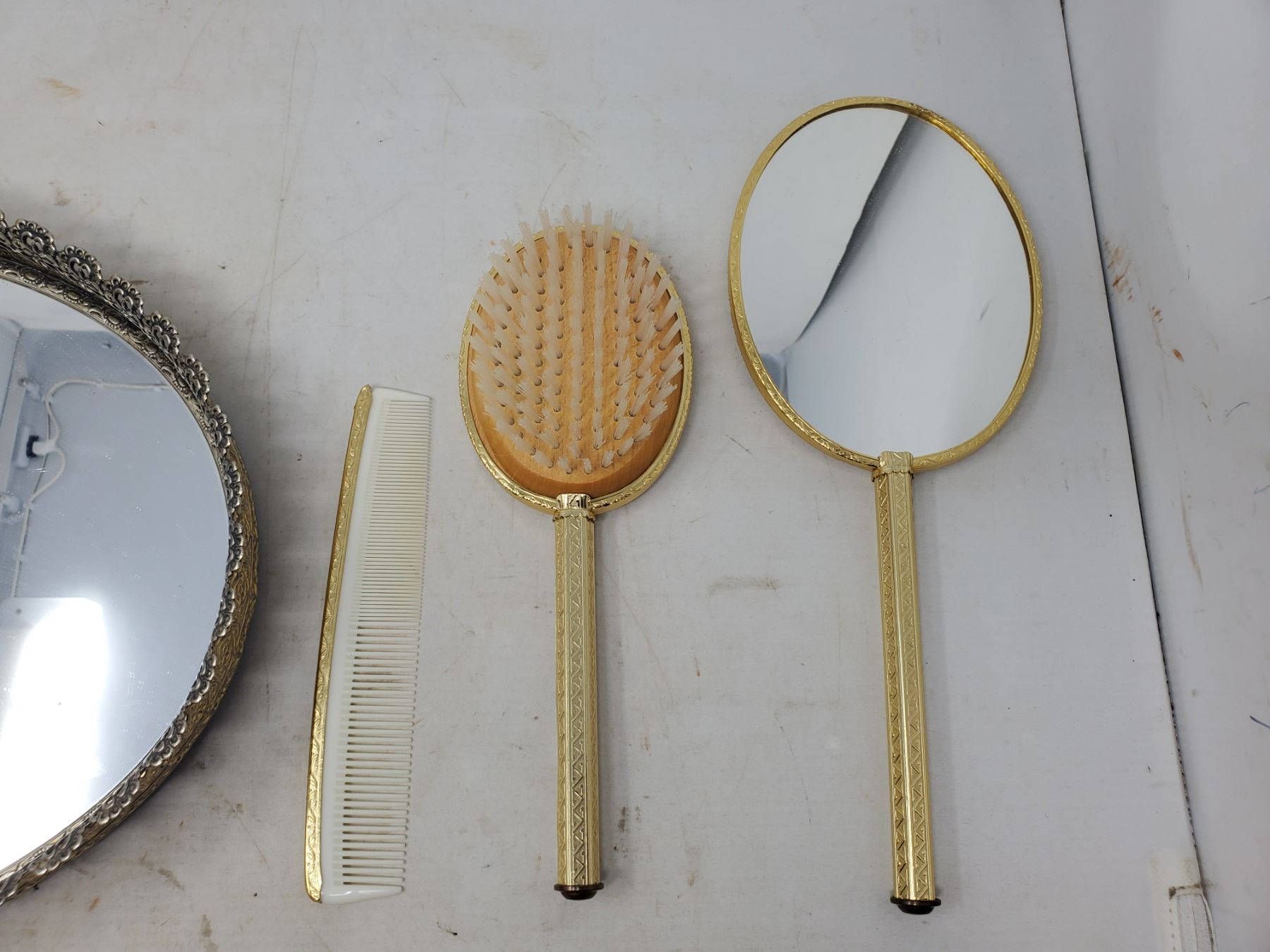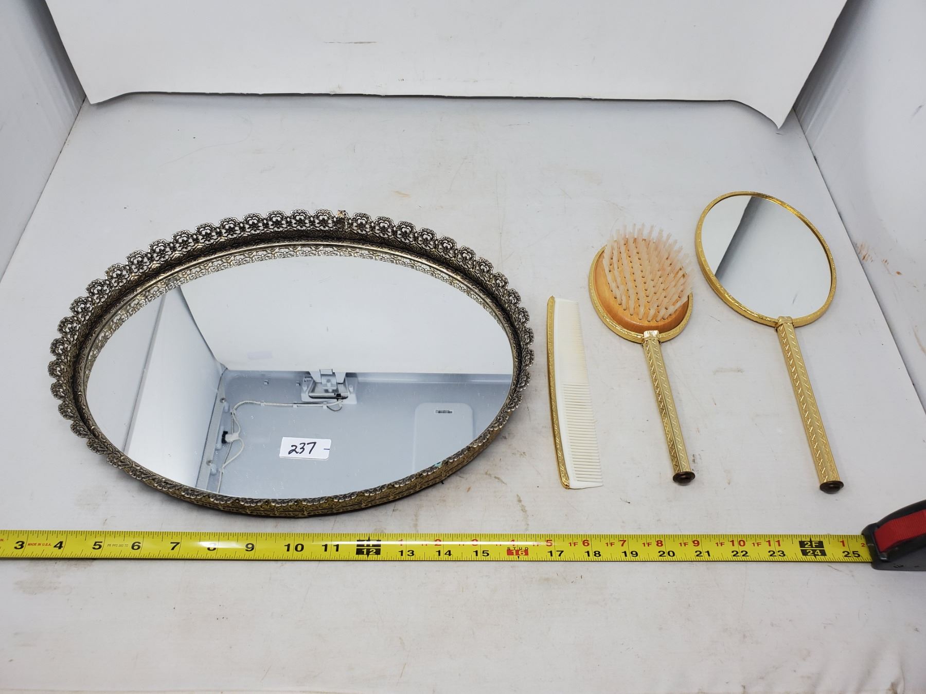 COMB BRUSH, MIRROR SET ON OVAL MIRROR BASE