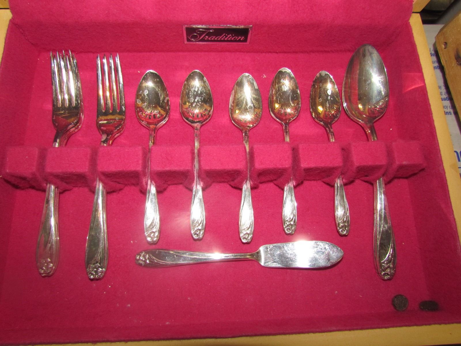COMMUNITY SILVERWARE SET, 8 SETTINGS W/ WOOD BOX