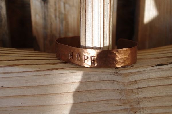 COPPER metal cuff bracelet/Engraved HOPE/1/2" in diameter