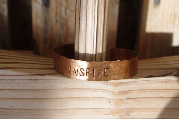 COPPER metal cuff bracelet/Engraved INSPIRE/1/2" in diameter