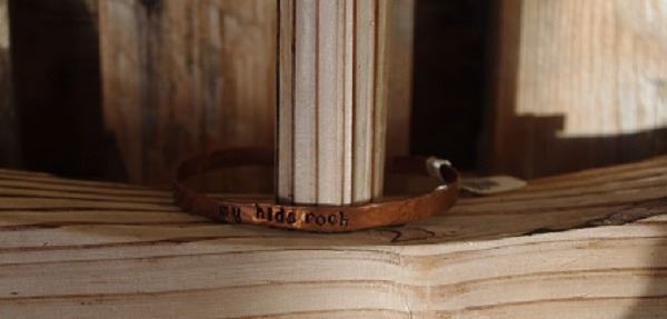 COPPER metal cuff bracelet/Engraved MY KIDS ROCK/THIN