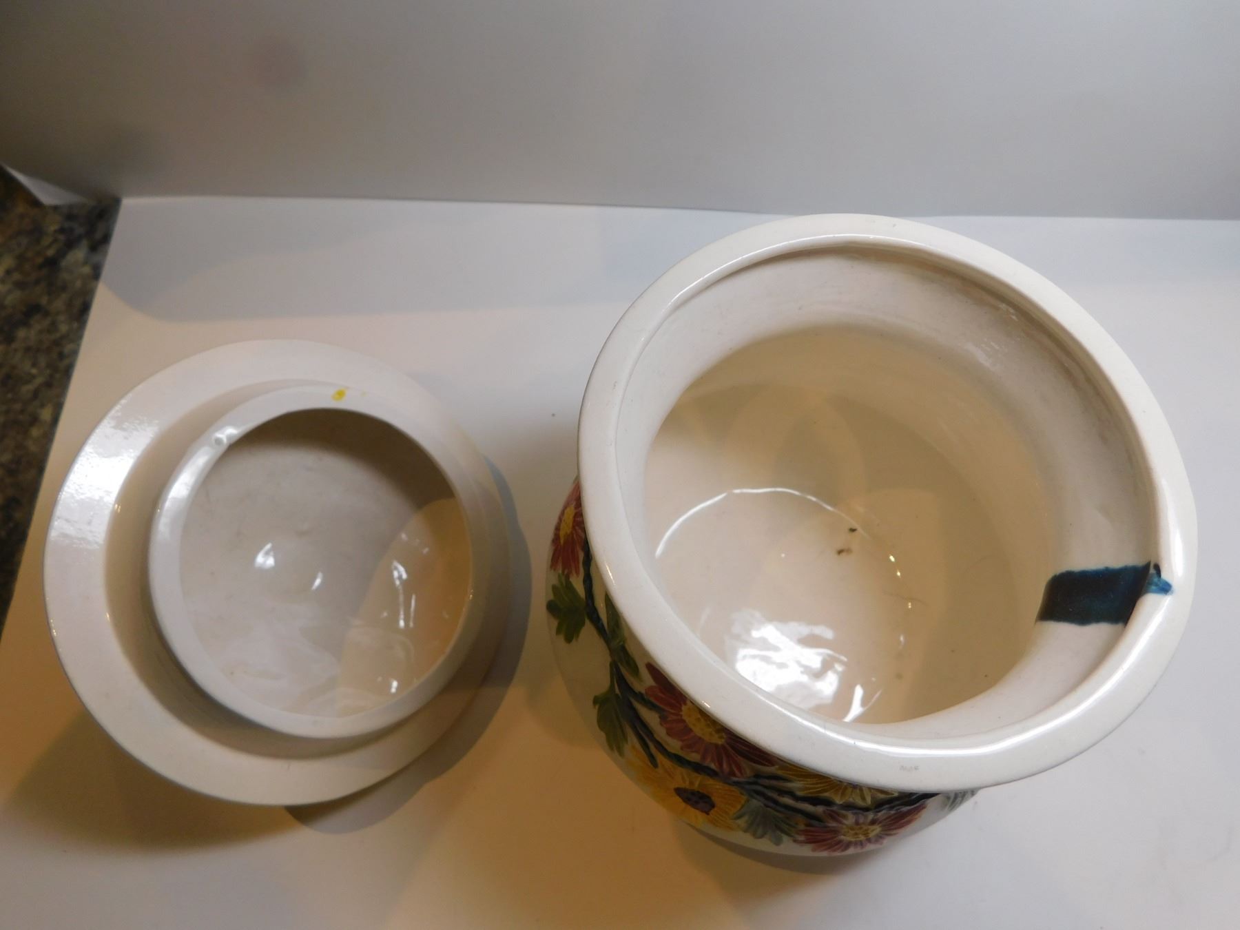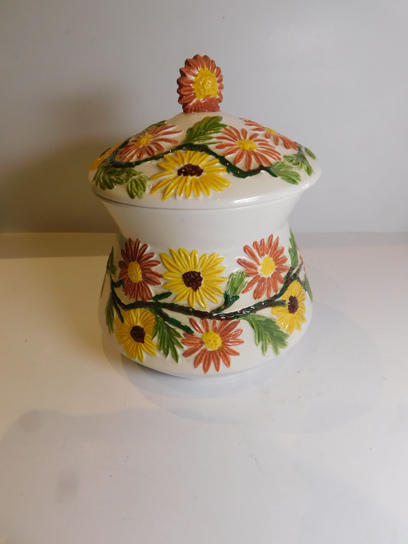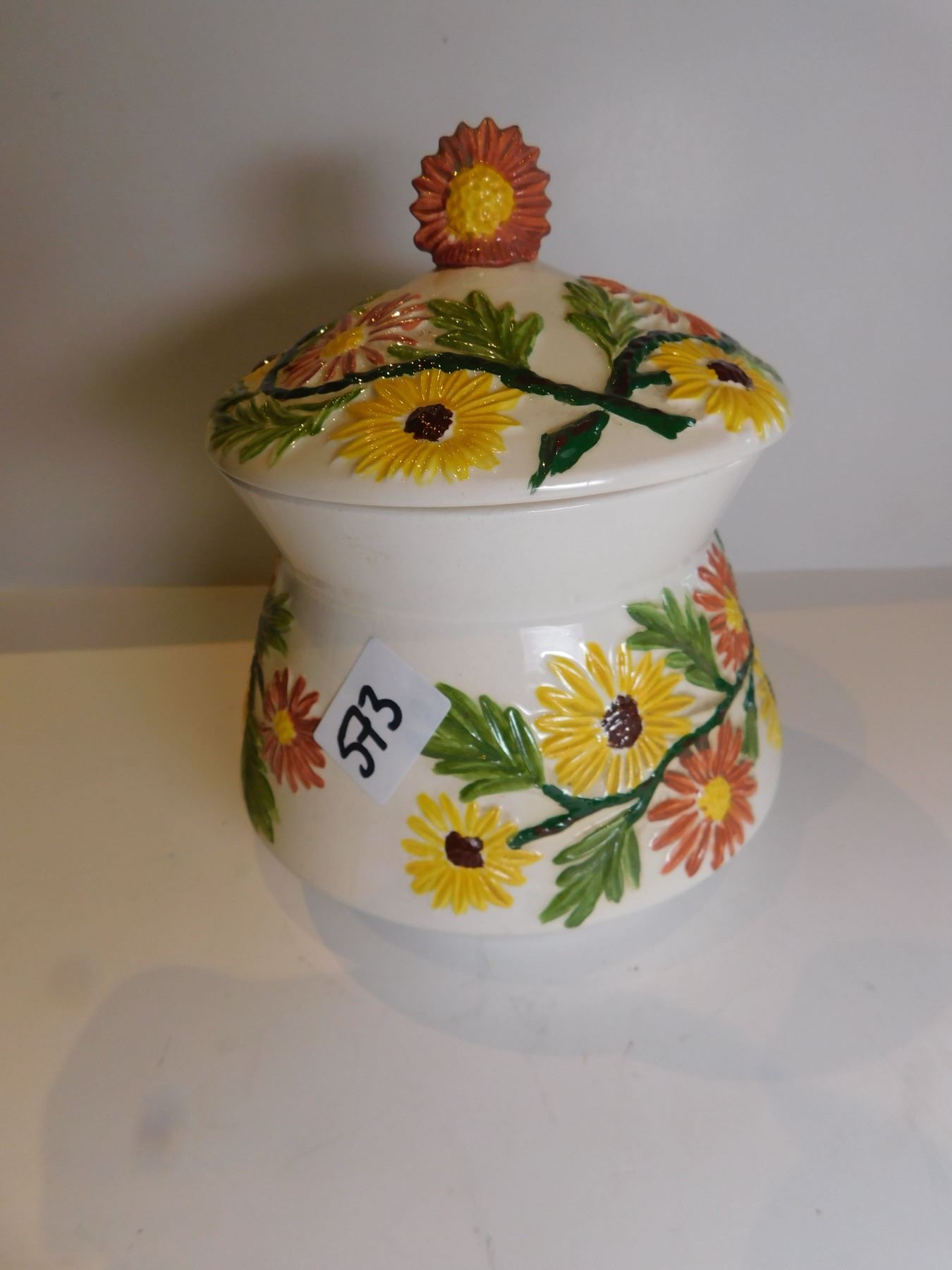 COVERED POTTERY FLOWER JAR
