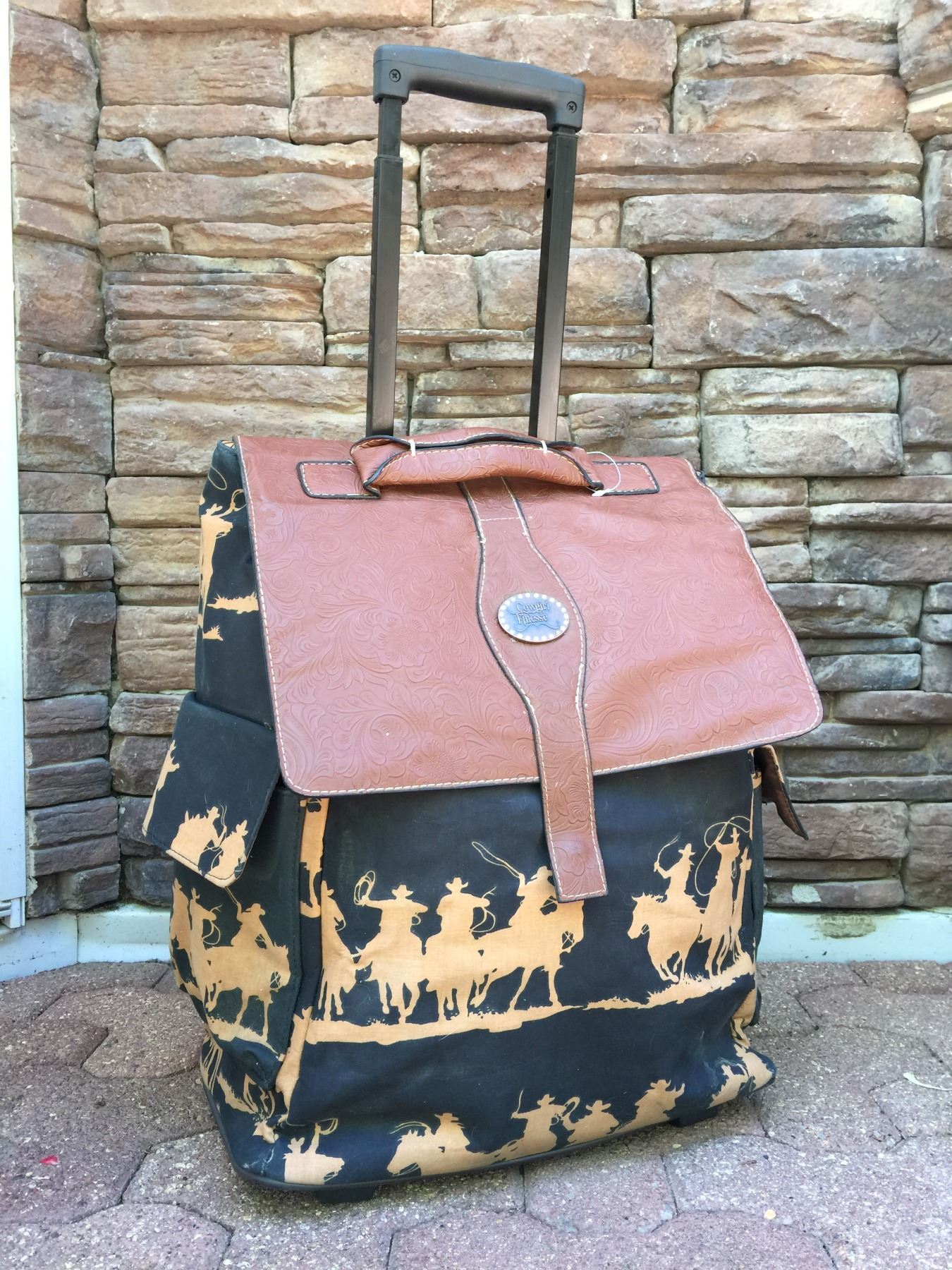 COWBOY SILOUETTE MOTIF/ROLLING CARRY ON/BROWN AND BLACK