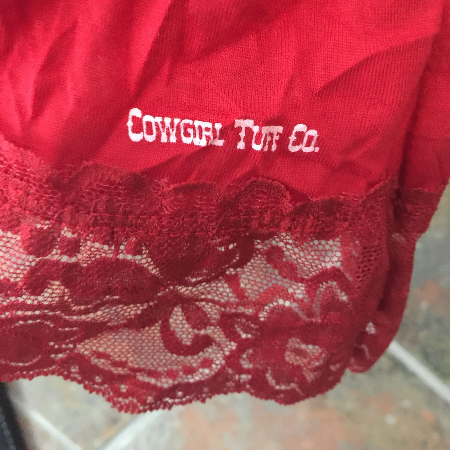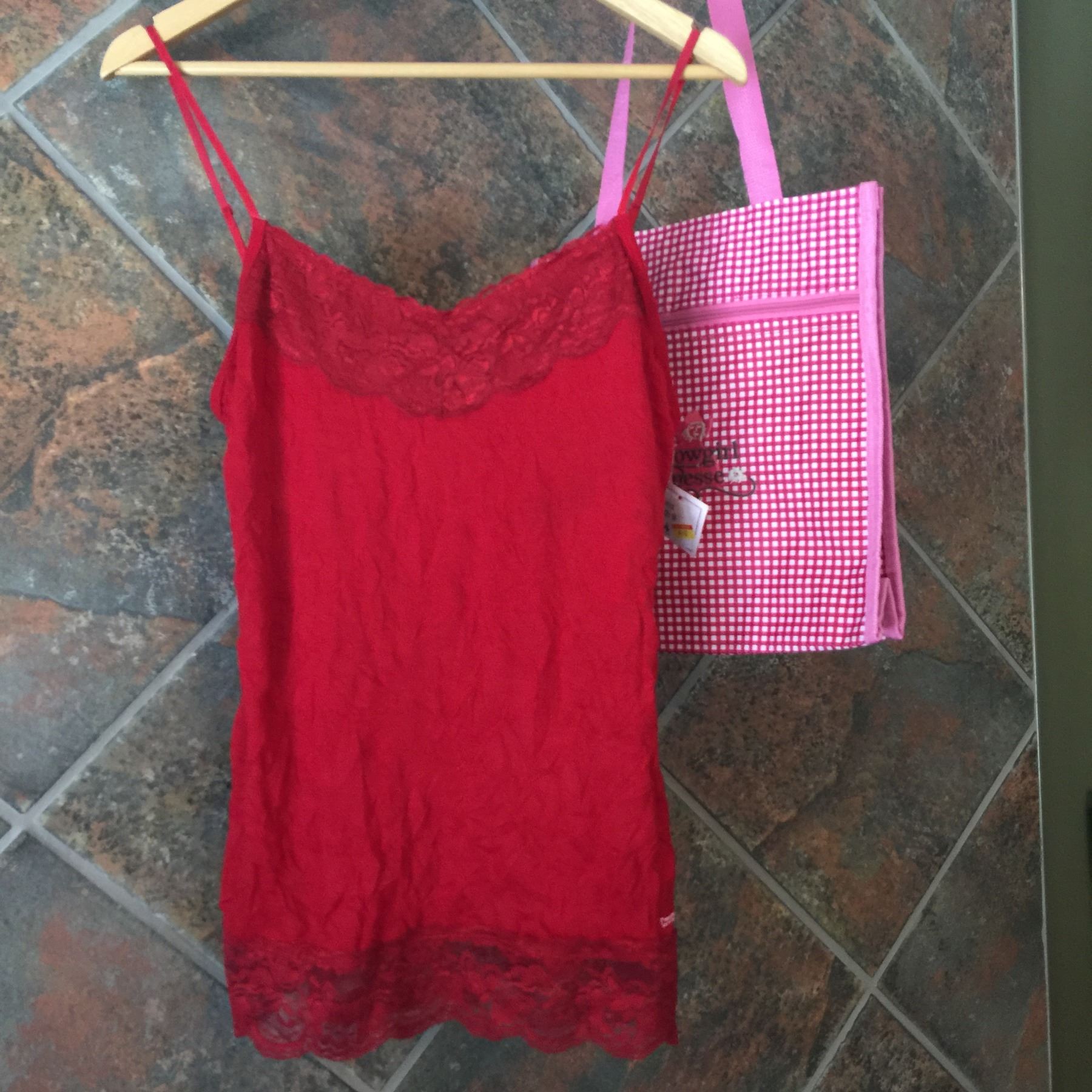 COWGIRL TUFF/Ladies red layering tank top/Red lace on top and bottom of tank/100% polyester/SIZE LARGE/COWGIRL FINESSE FINESSE TOTE BAG