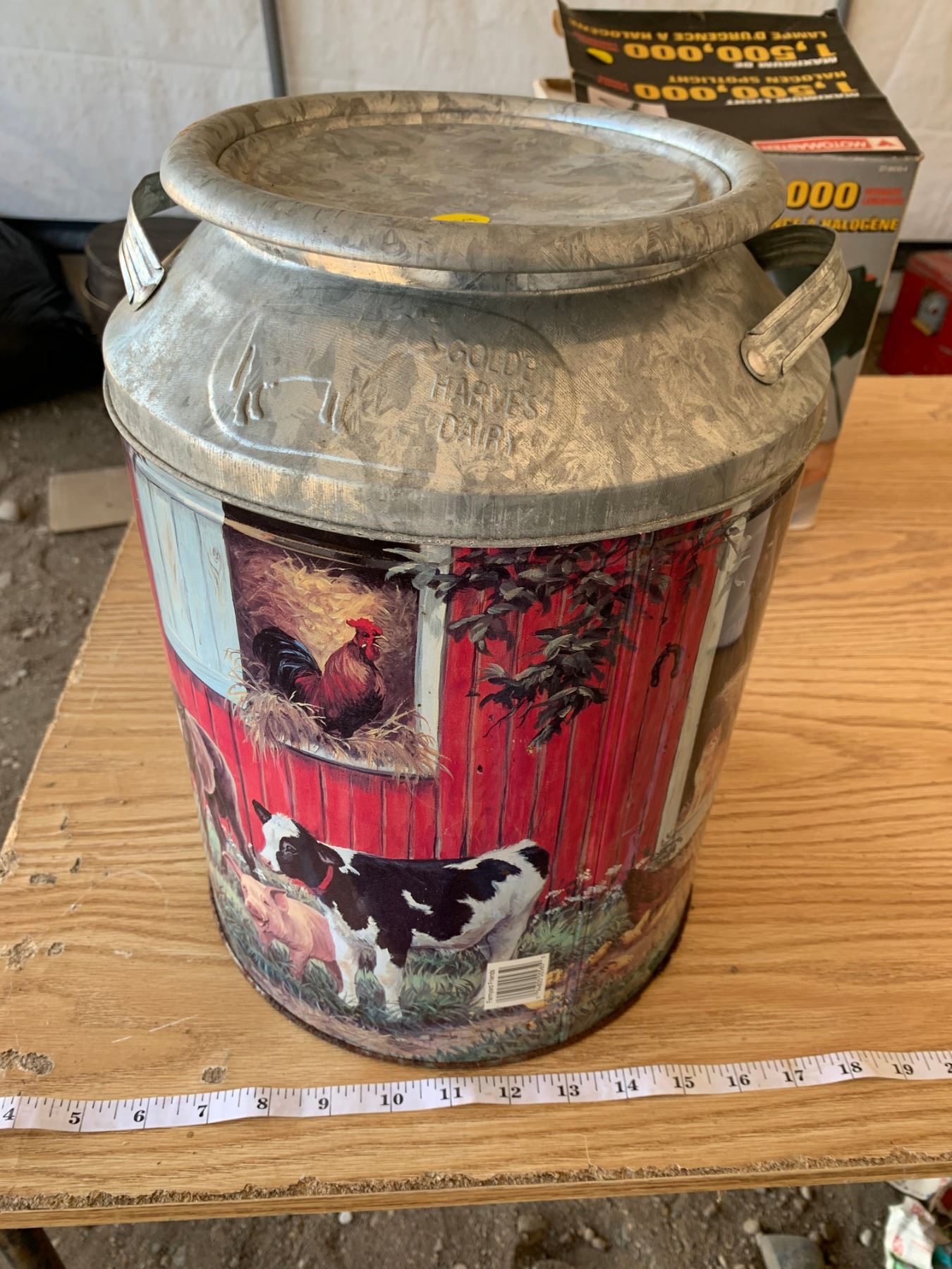 CREAM CAN W/BARNYARD MOTIF
