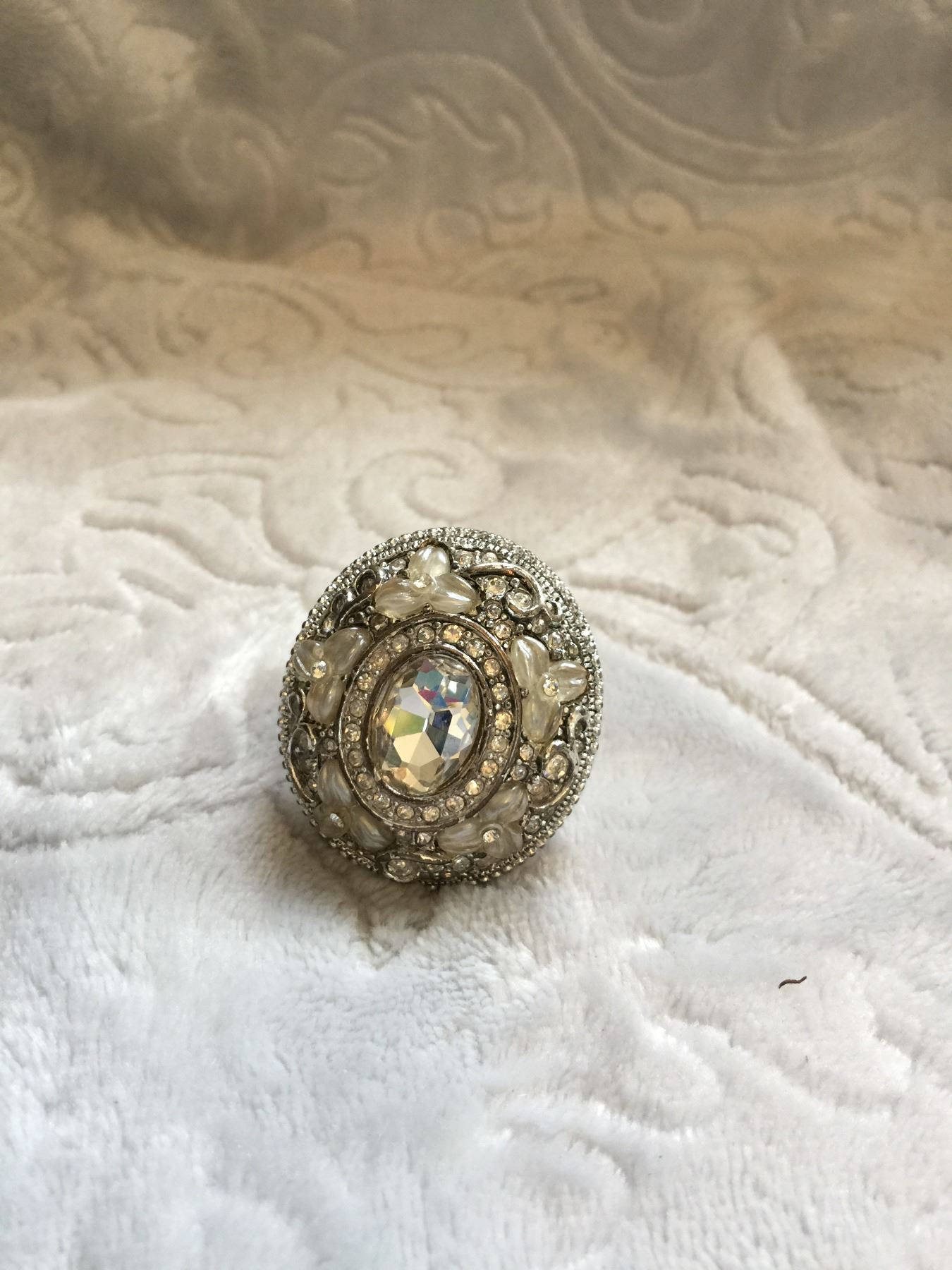 CRYSTAL PEARL SILK SCARF SLIDE/RING /SILVER