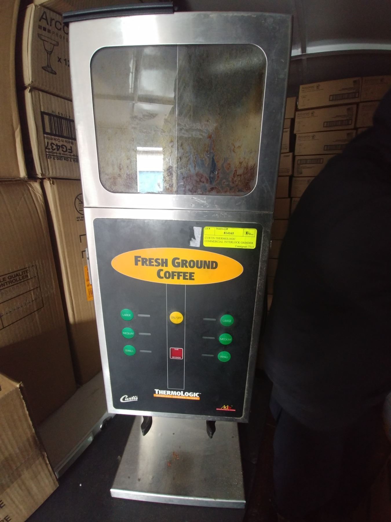 CURTIS THEROLOGIC COMMERCIAL INTERLOCK COFFEE GRINDER, DUAL HOPPER, IN WORKING ORDER