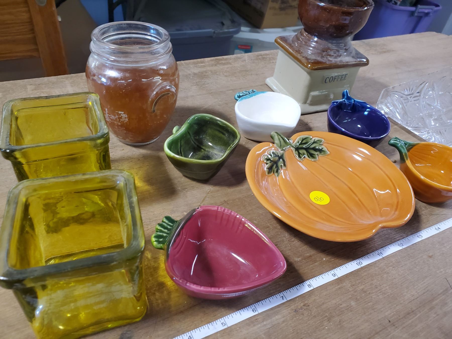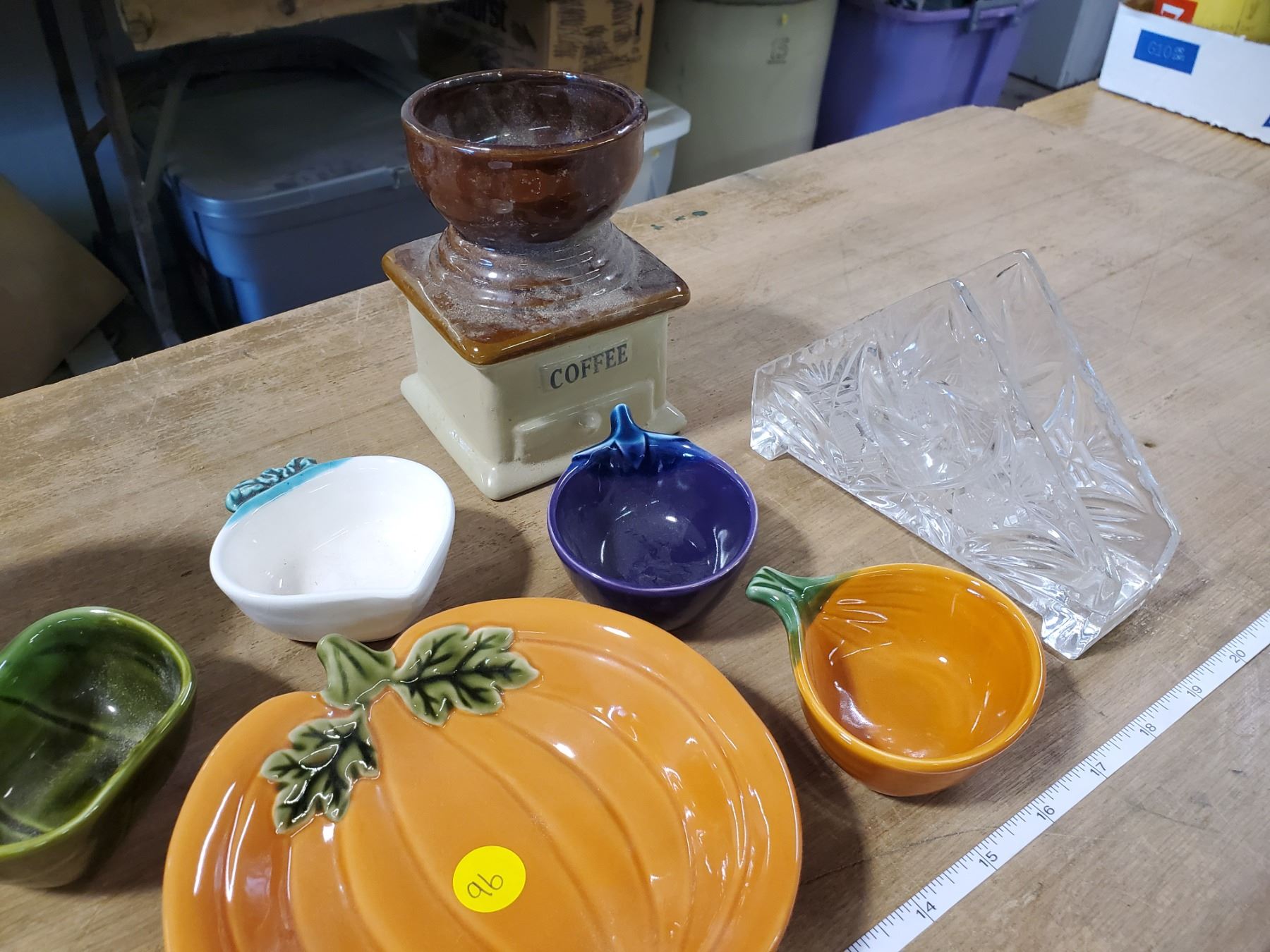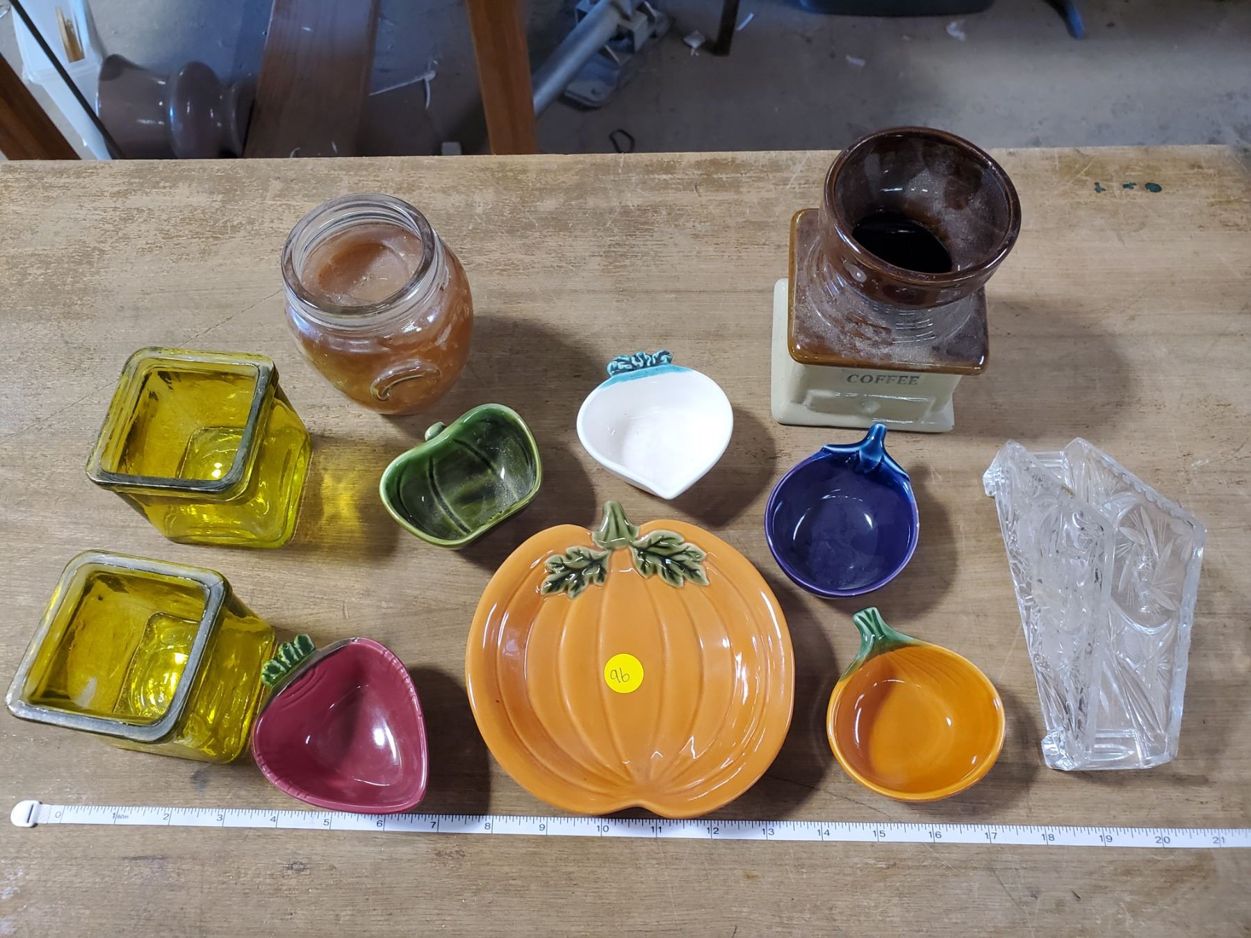 CUTE VEGETABLE CERAMIC SET, GLASS NAPKIN HOLDER ETC