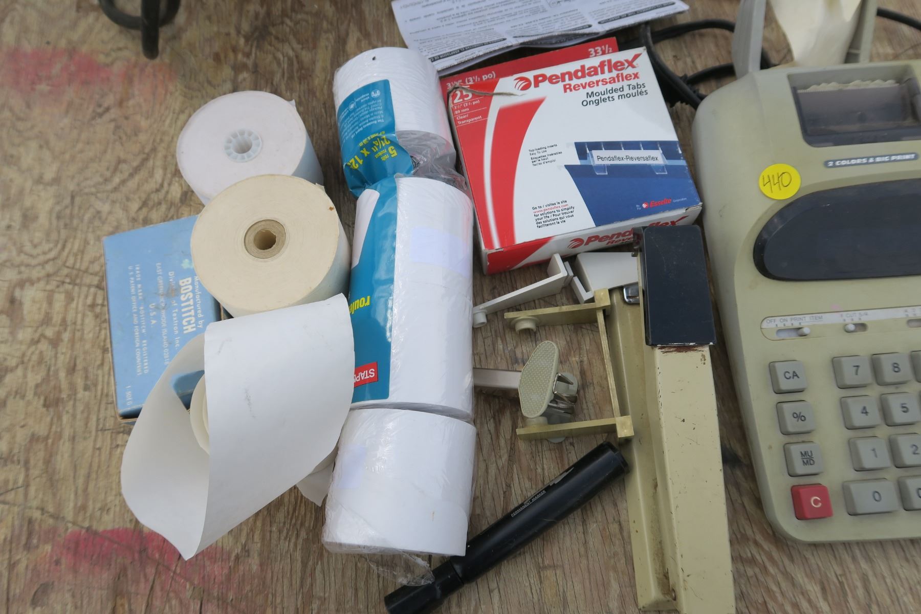Calculator, 7 Rolls of Paper AND Office Supplies