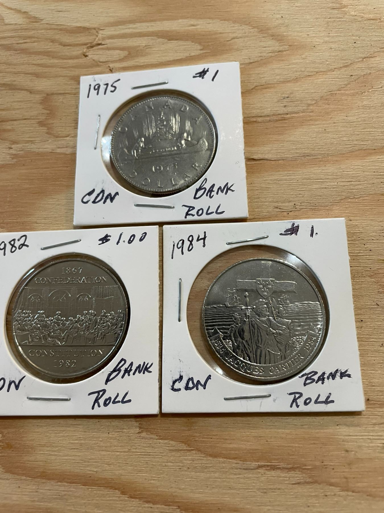 Canada $1.00 Nickel Dollar, 1975 Dollar, 1867-1982 Confederation/Constitution, 1984 Jacques Cartier