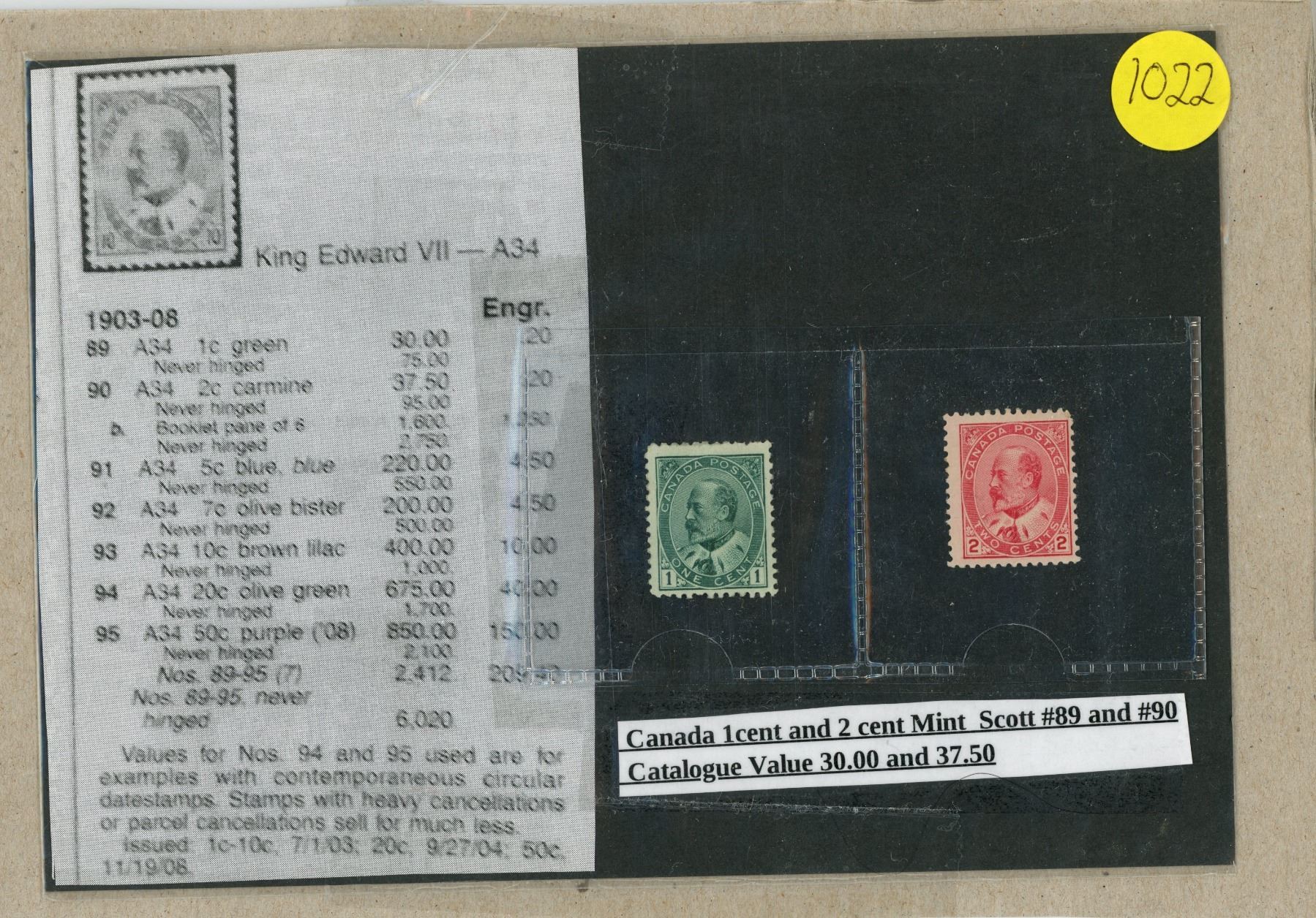Canada 1 Cent & 2 Cent King Edward Stamps - Mint Scott #89 & #90