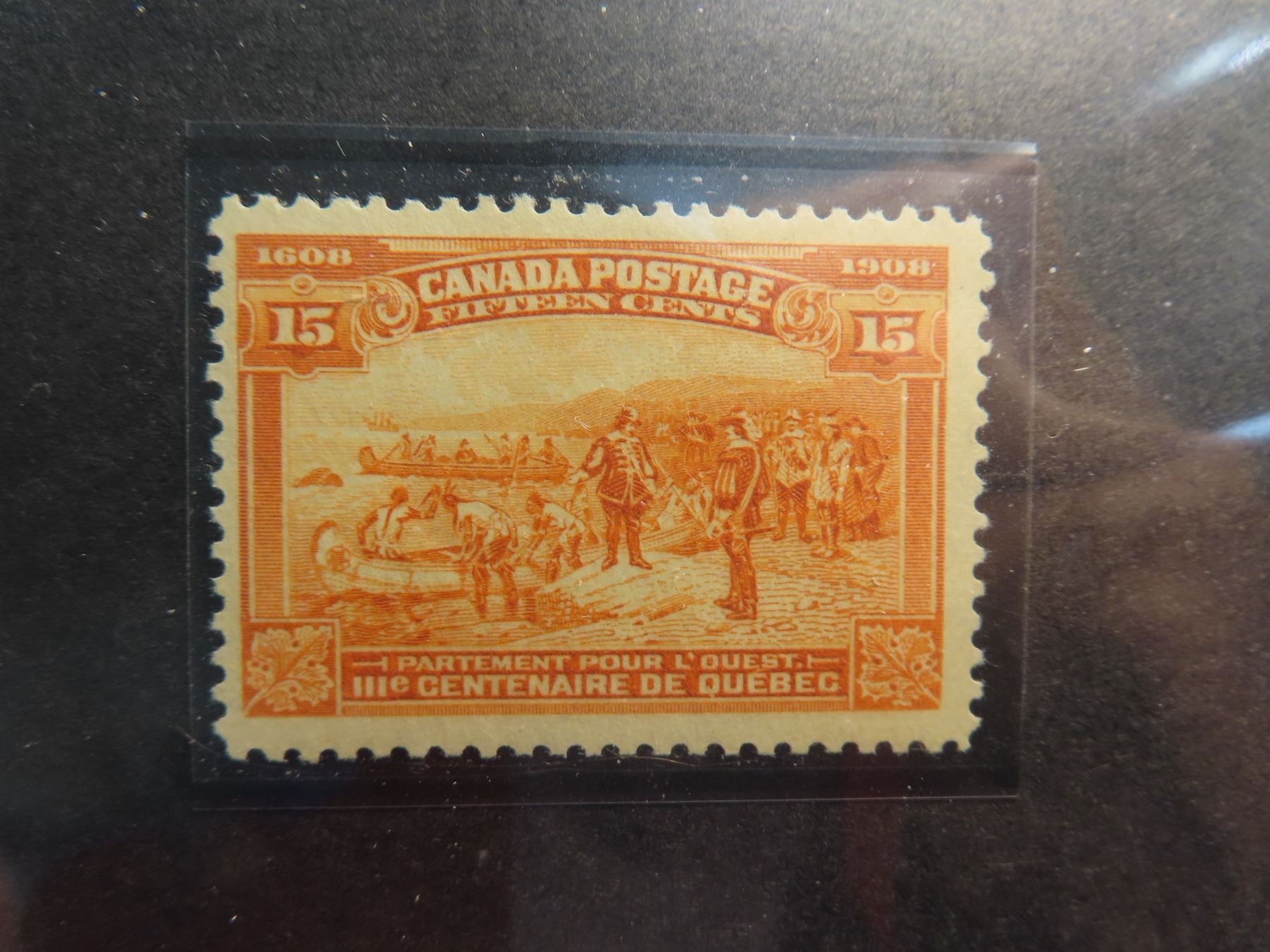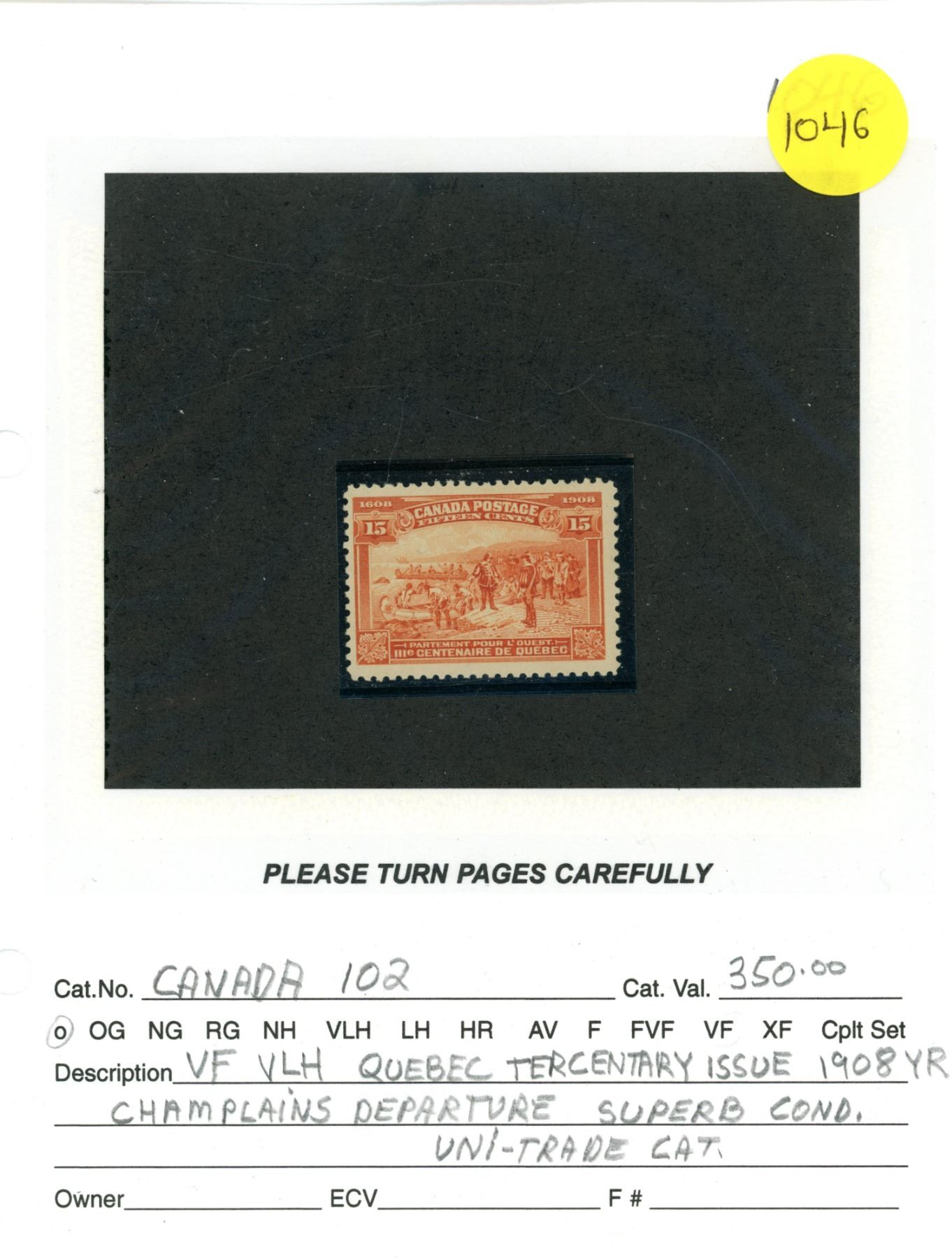 Canada 102 VF mint L.H. quebec tercentenary champlains departure issue uni-trade 350.00