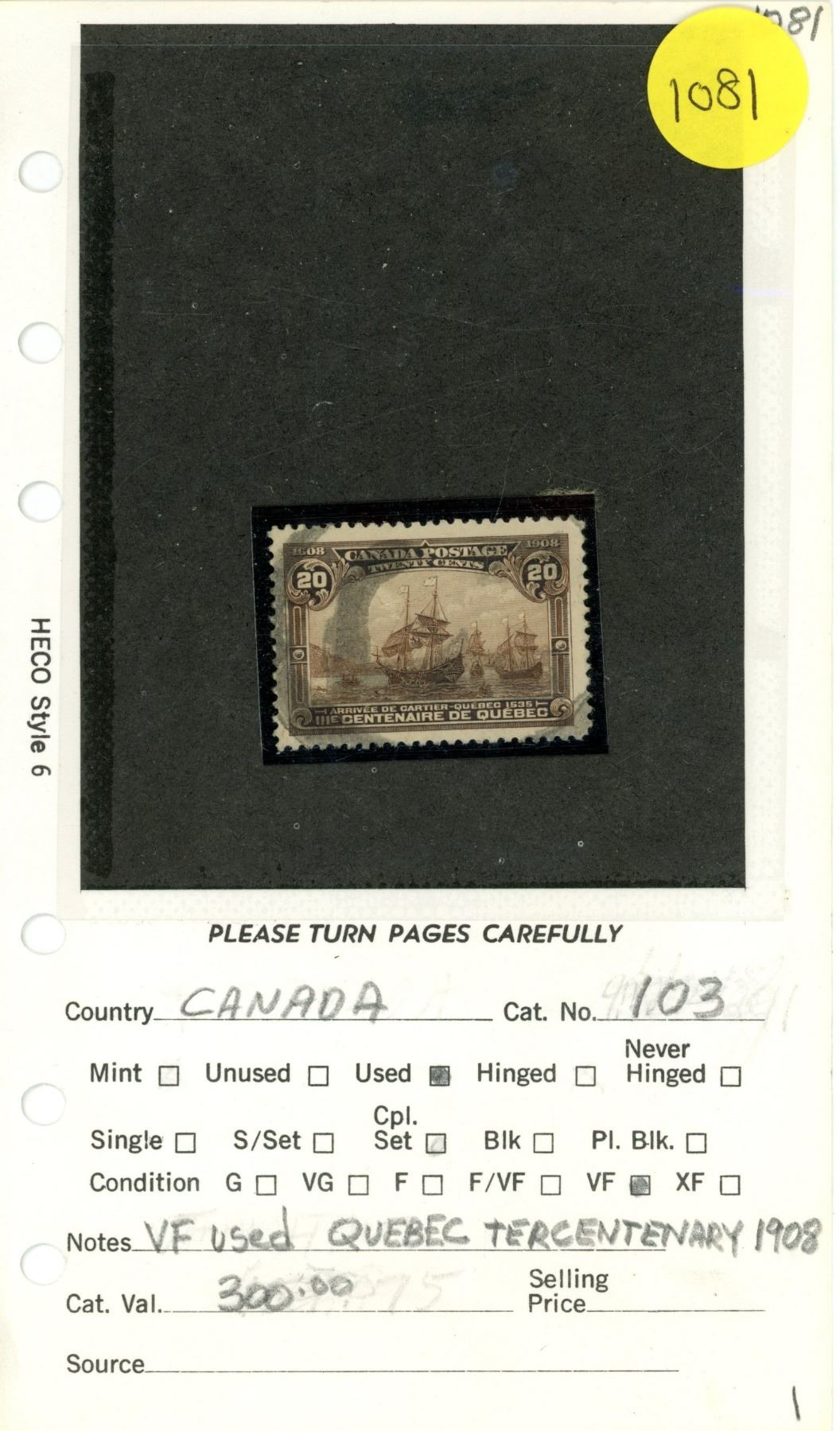 Canada 103 VF used quebec tercentenary 1908 yr uni-trade Cat. 300.00