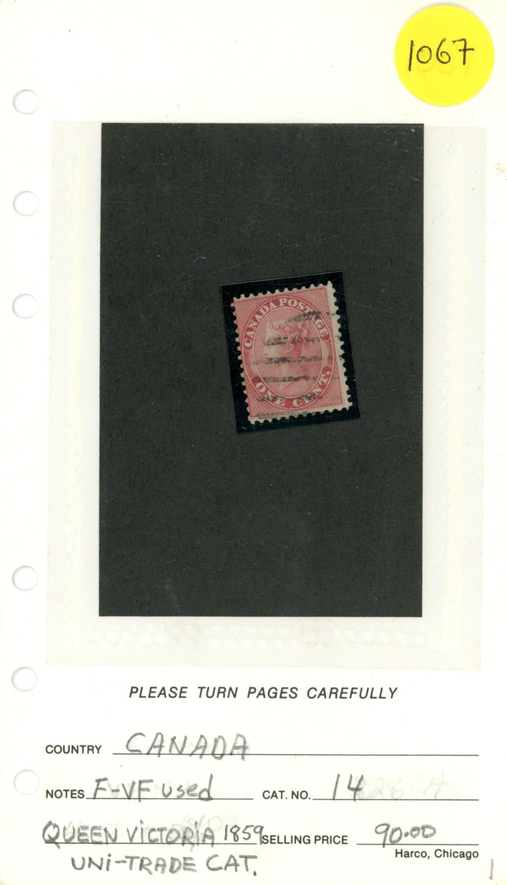Canada 14 F-VF queen victoria 1859 yr. uni-trade Cat. 90.00