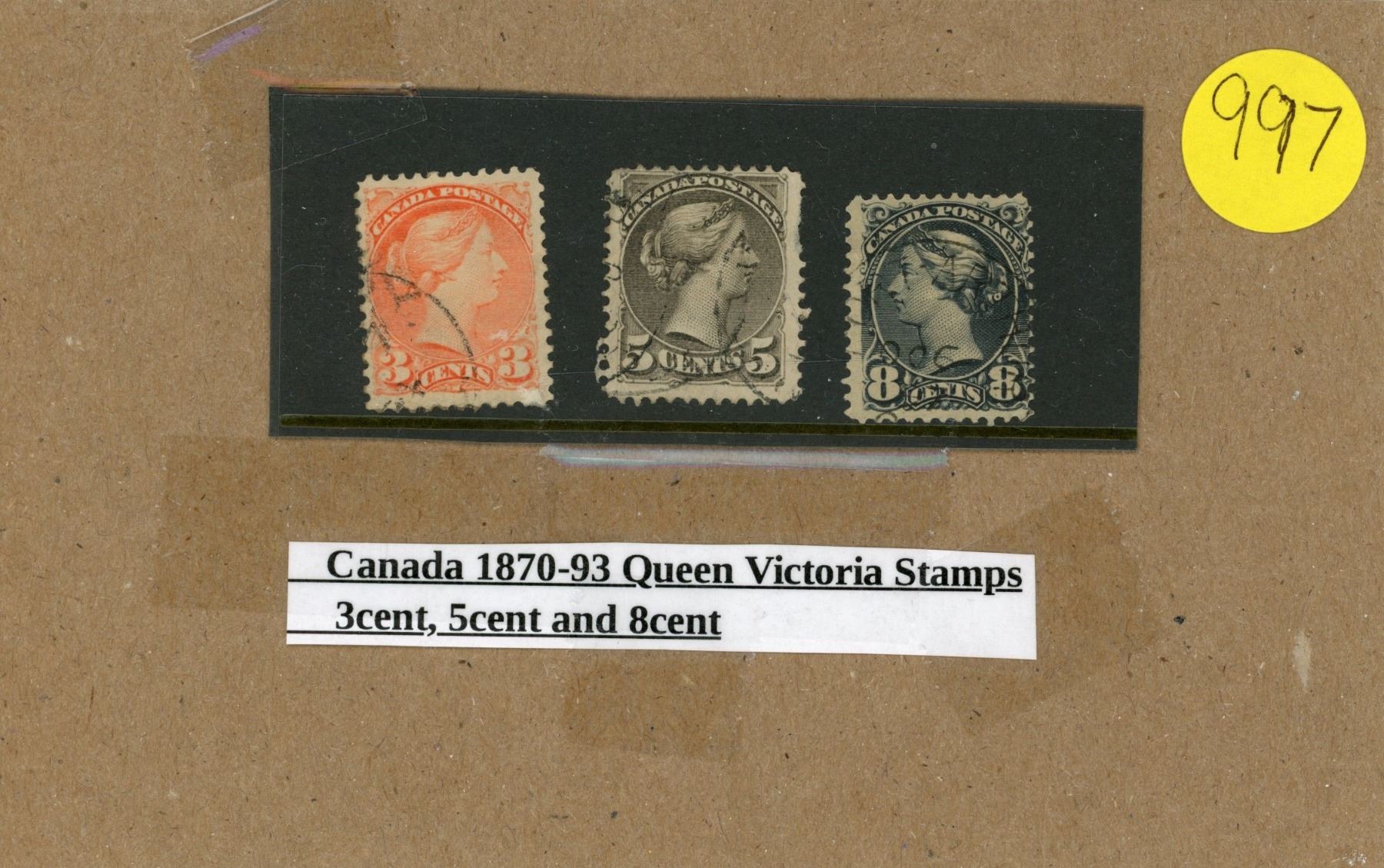 Canada 1870-93 Queen Victoria Stamps 3, 5 & 8 Cent