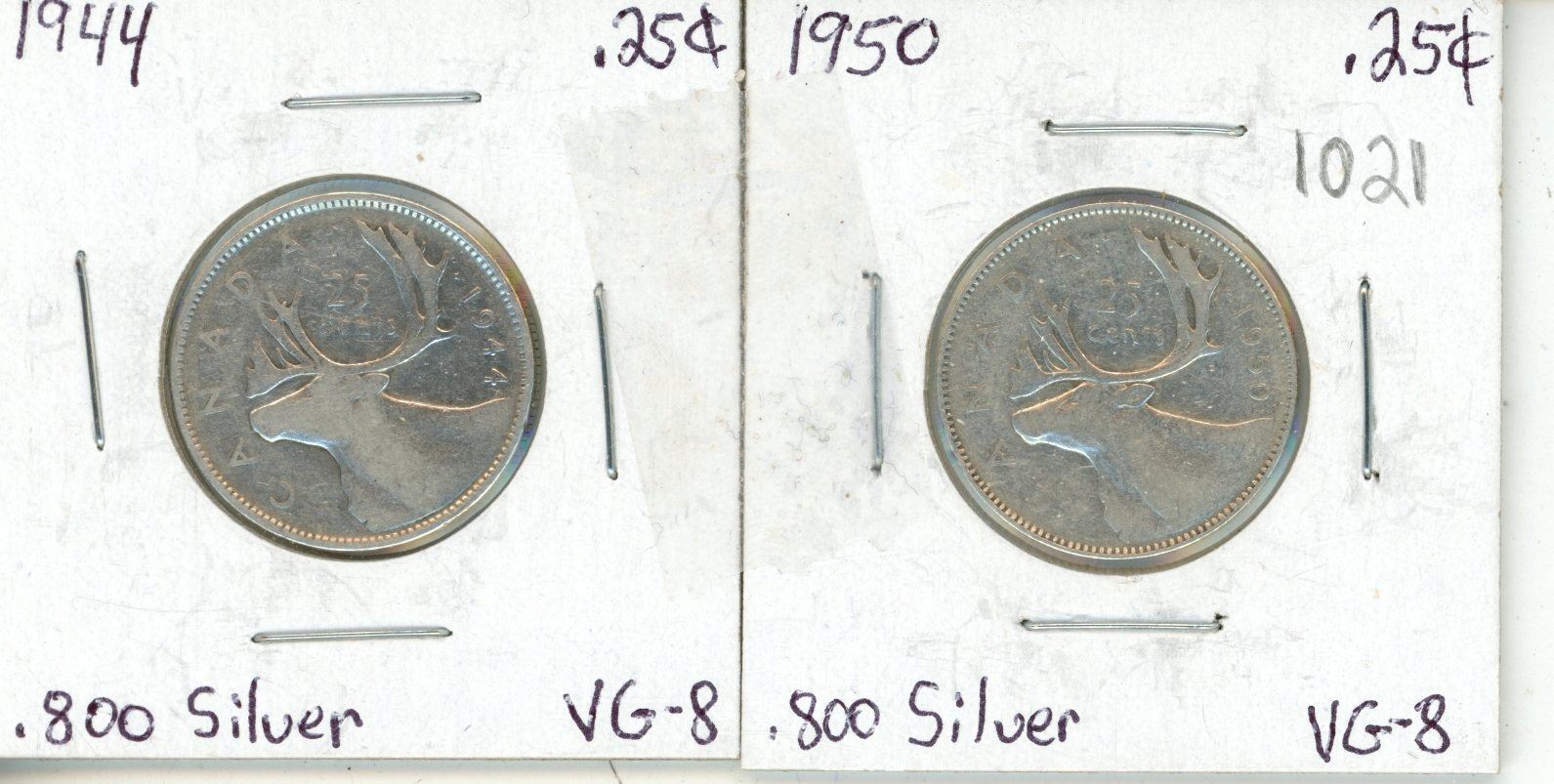 Canada 1944, 1950 Quarters .800 Silver.