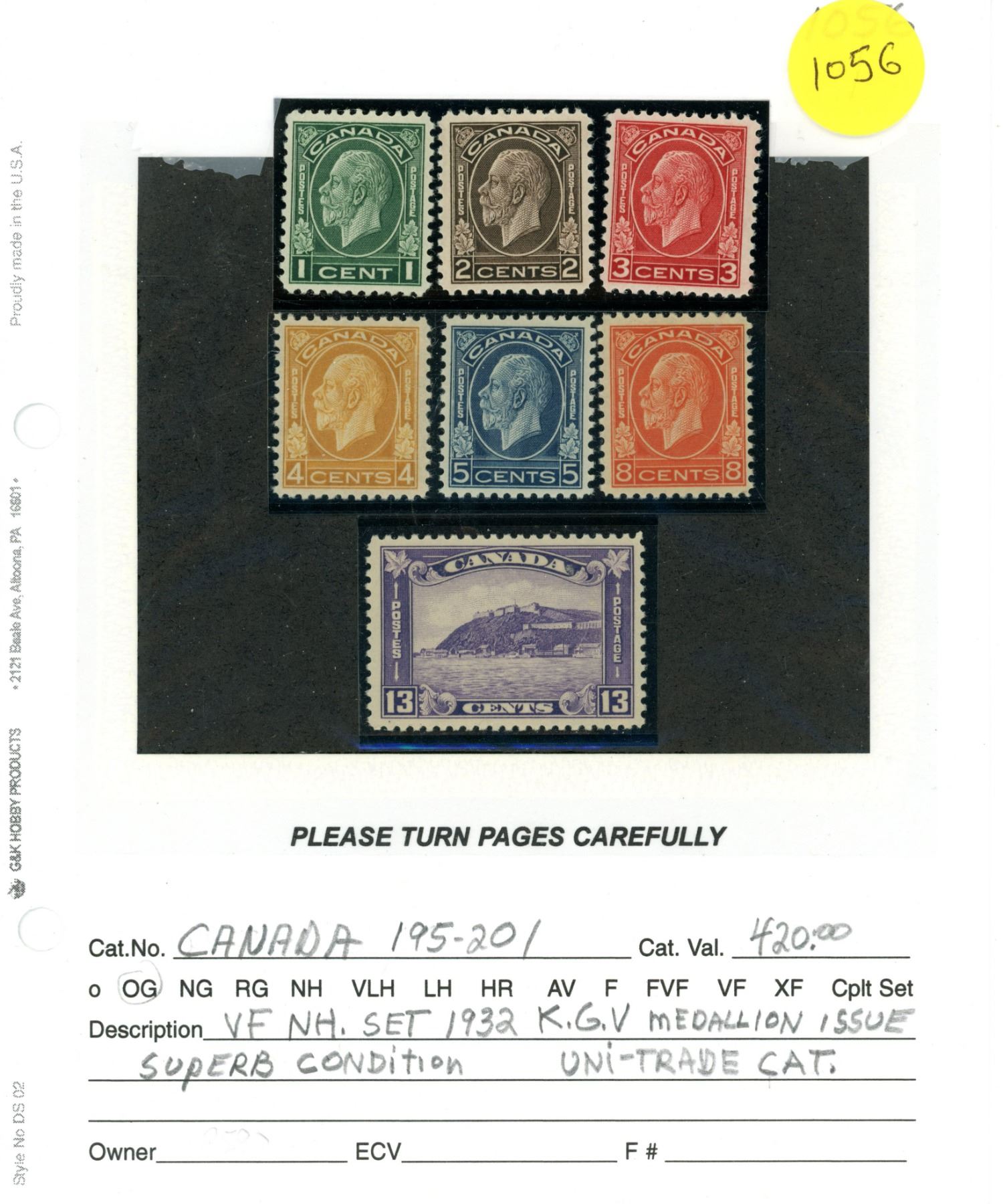 Canada 195-201 VFNH K.G. 5 medallion issue 1932 yr. superb uni-trade Cat. 420.00